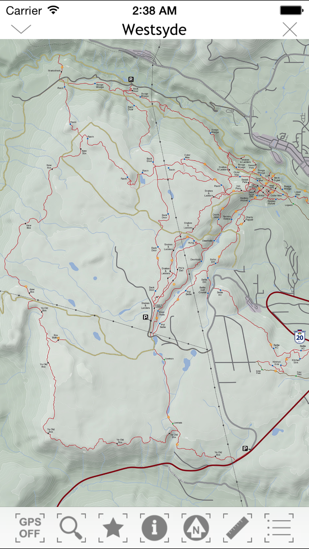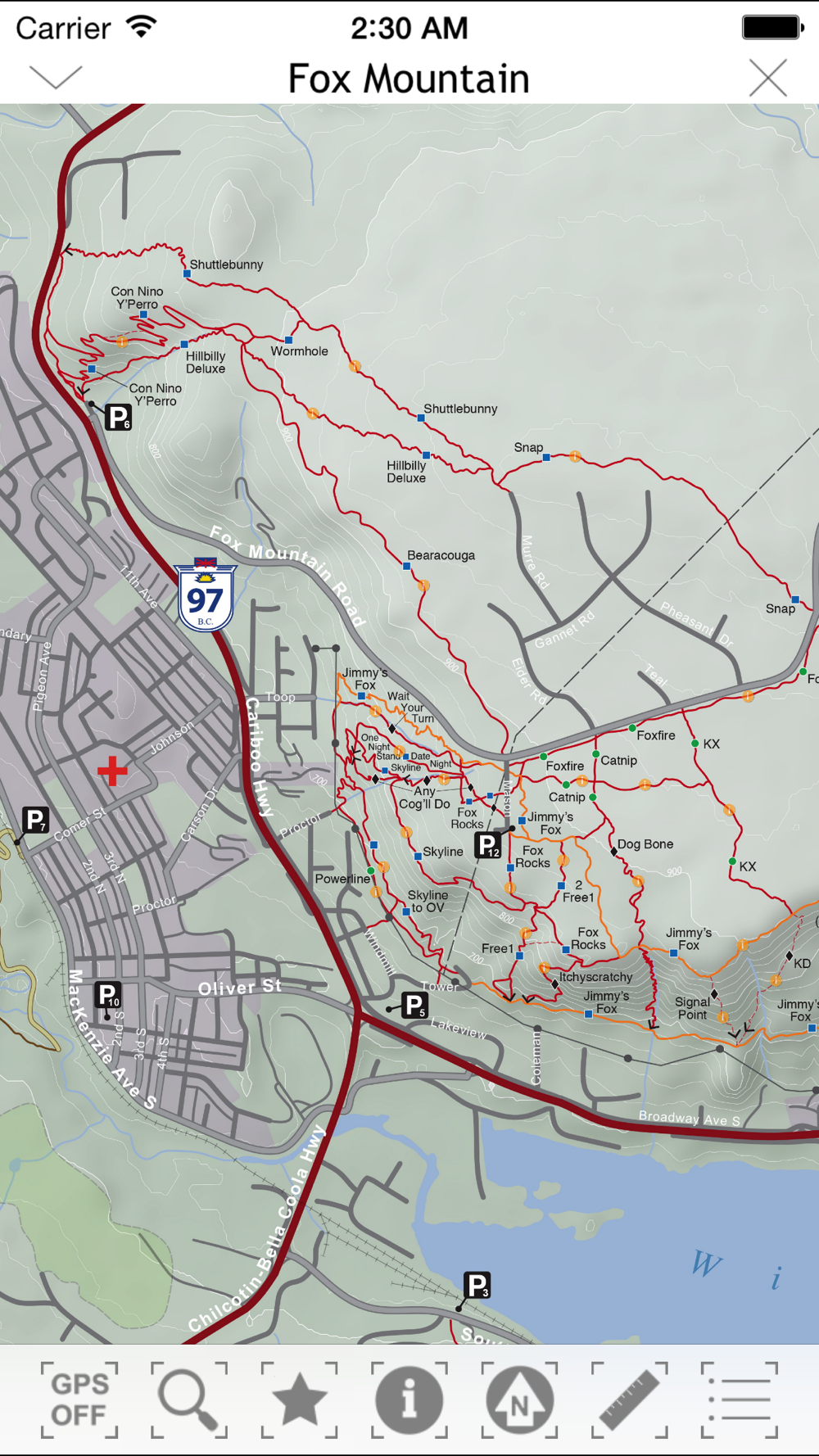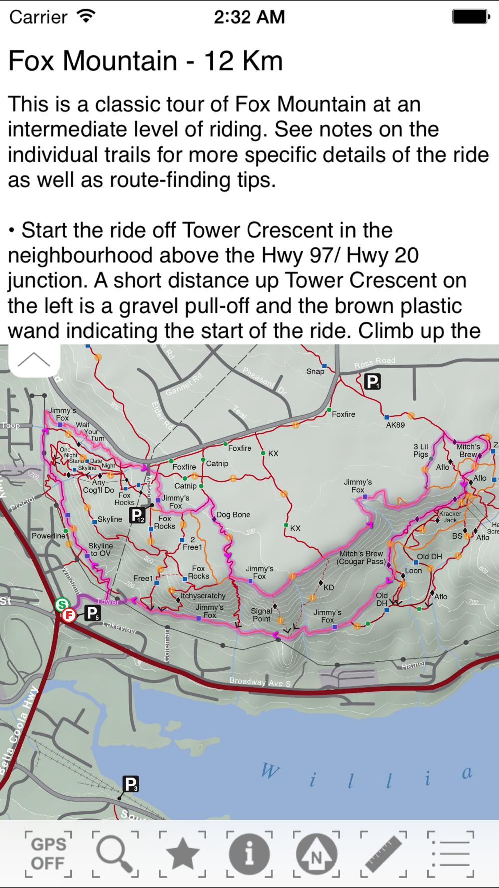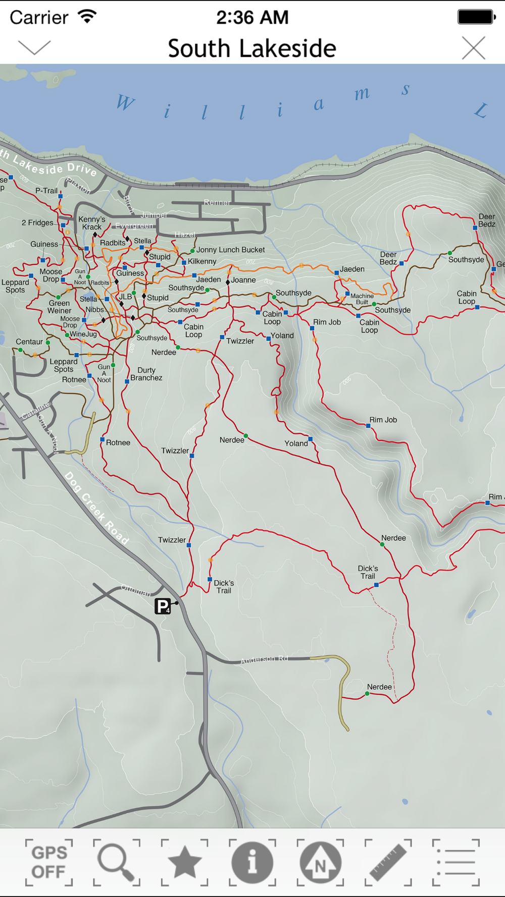 -directions to parking areas for common trail access points (simply tap a parking symbol on the map)