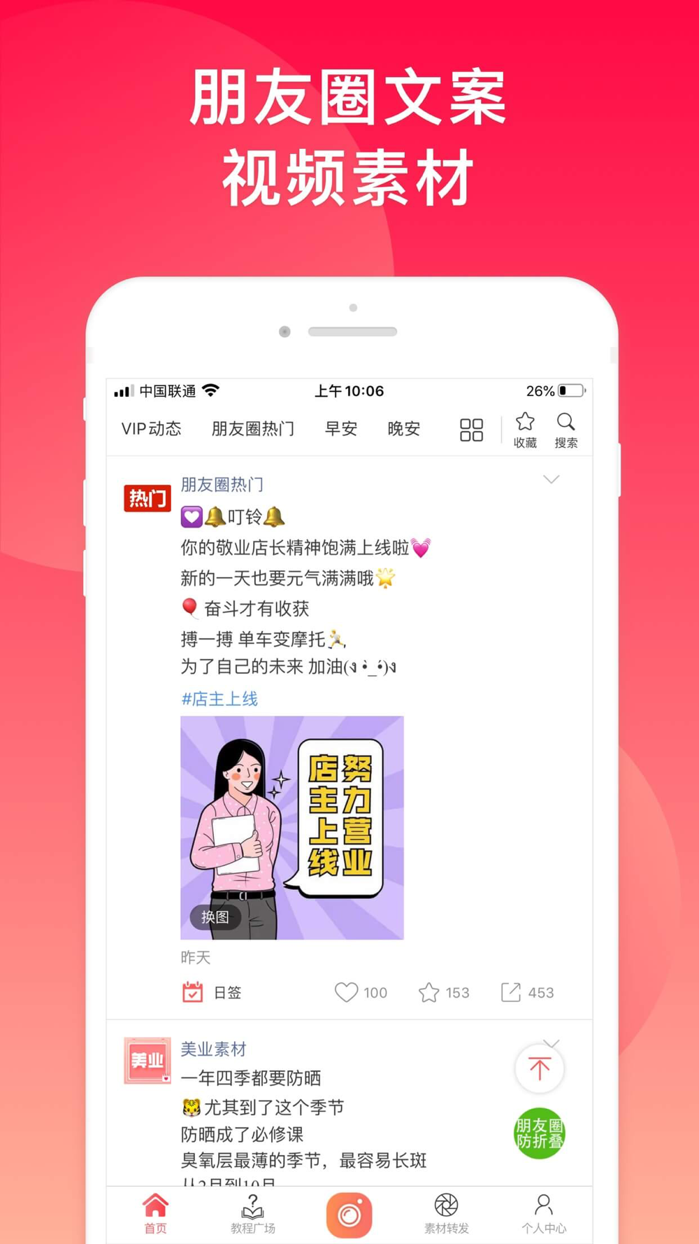 2.海报大片:不用花钱找设计师,分分钟设计出自己的海报,只需修改图片和文字,海报主题针对微商经营场景设计,支持添加图片抠图、翻转照片、支持上传视频、添加视频声音等;