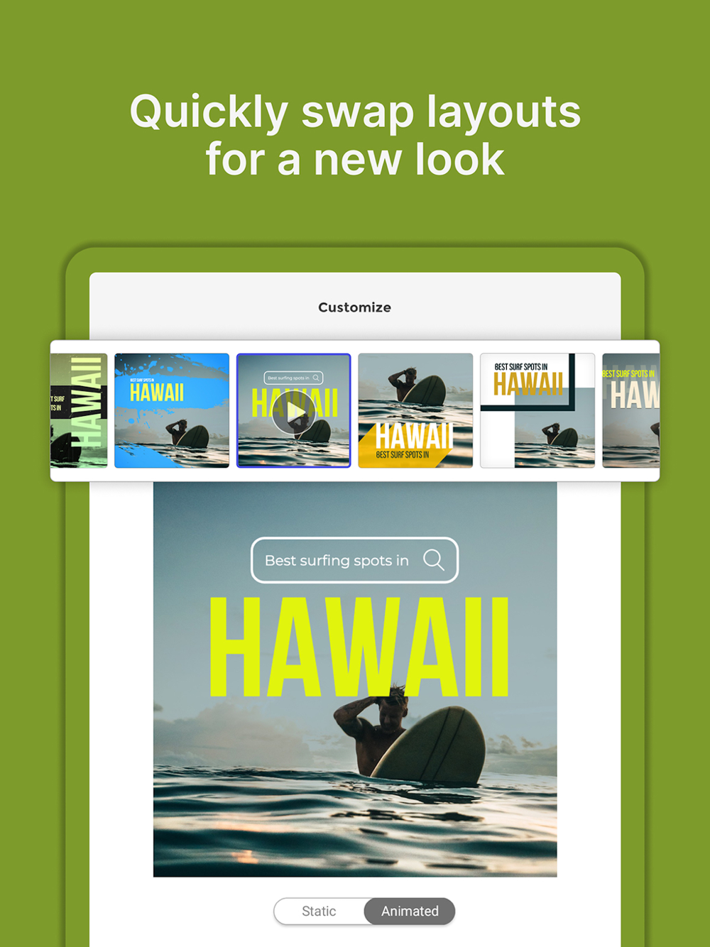 Pick from 1000s of customizable templates made for your business and goal. Easily create video, animation, or static posts in minutes.
