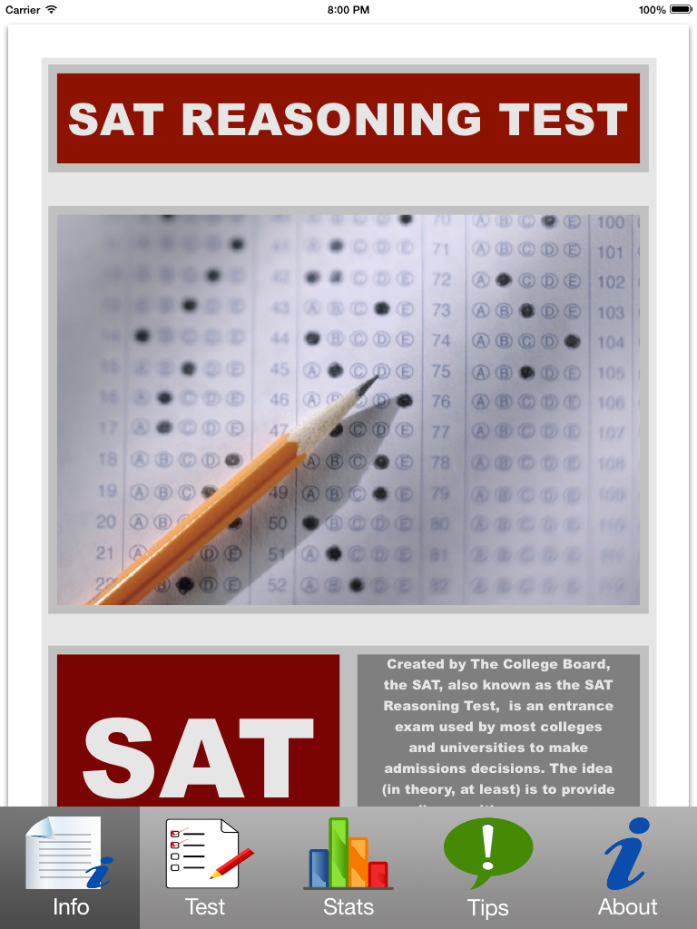 Over two million students take the SAT every year and it is used by nearly every college in America for evaluating a student’s college preparedness. It is designed to measure a student’s ability to understand and process elements in three subjects: reading, writing, and math. SAT scores are calculated based on a student’s performance relative to other test-takers, and have proven to be an indicator of collegiate success.