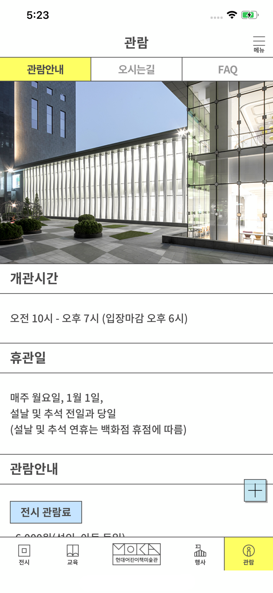 관람안내 - 현대어린이책미술관 휴관 및 이용안내를 모바일로 직접만나보실수 있습니다.