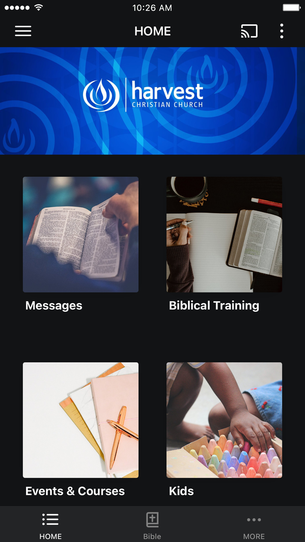 The Harvest app was developed with the Subsplash App Platform.