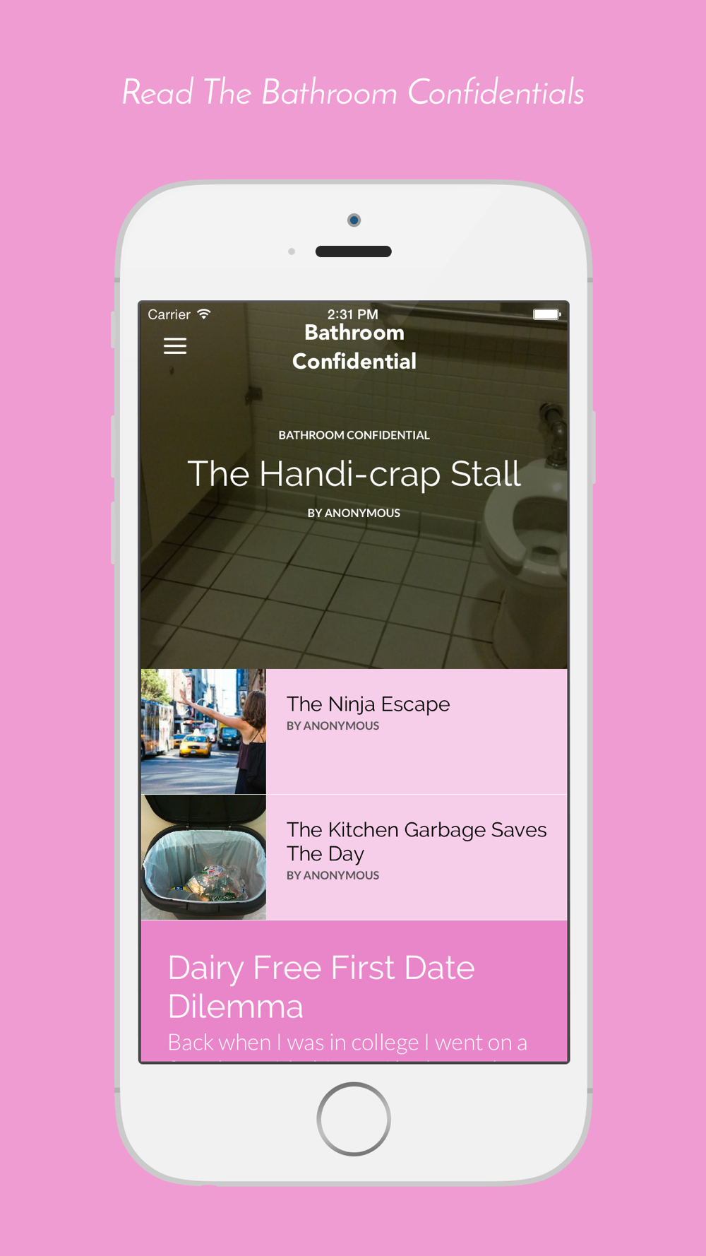 So browse through our latest articles, check out our video archive, and read up on user submitted stories in our Bathroom Confidential!