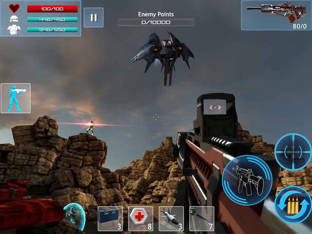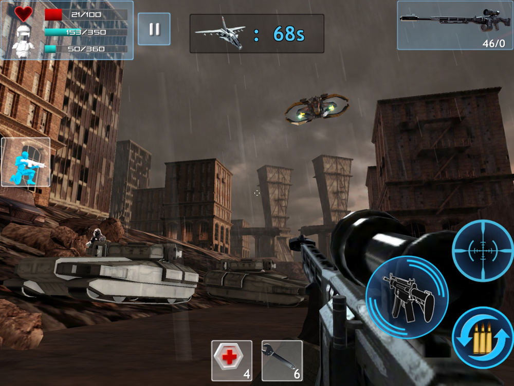 You will need all of your advanced warfare training and shooting skills to wipeout the aliens in 8 spectacular battlefields. Carry out combat missions to hunt snipers, destroy tanks, crush elite Bosses, target and kill enemies, and shoot alien gunships.