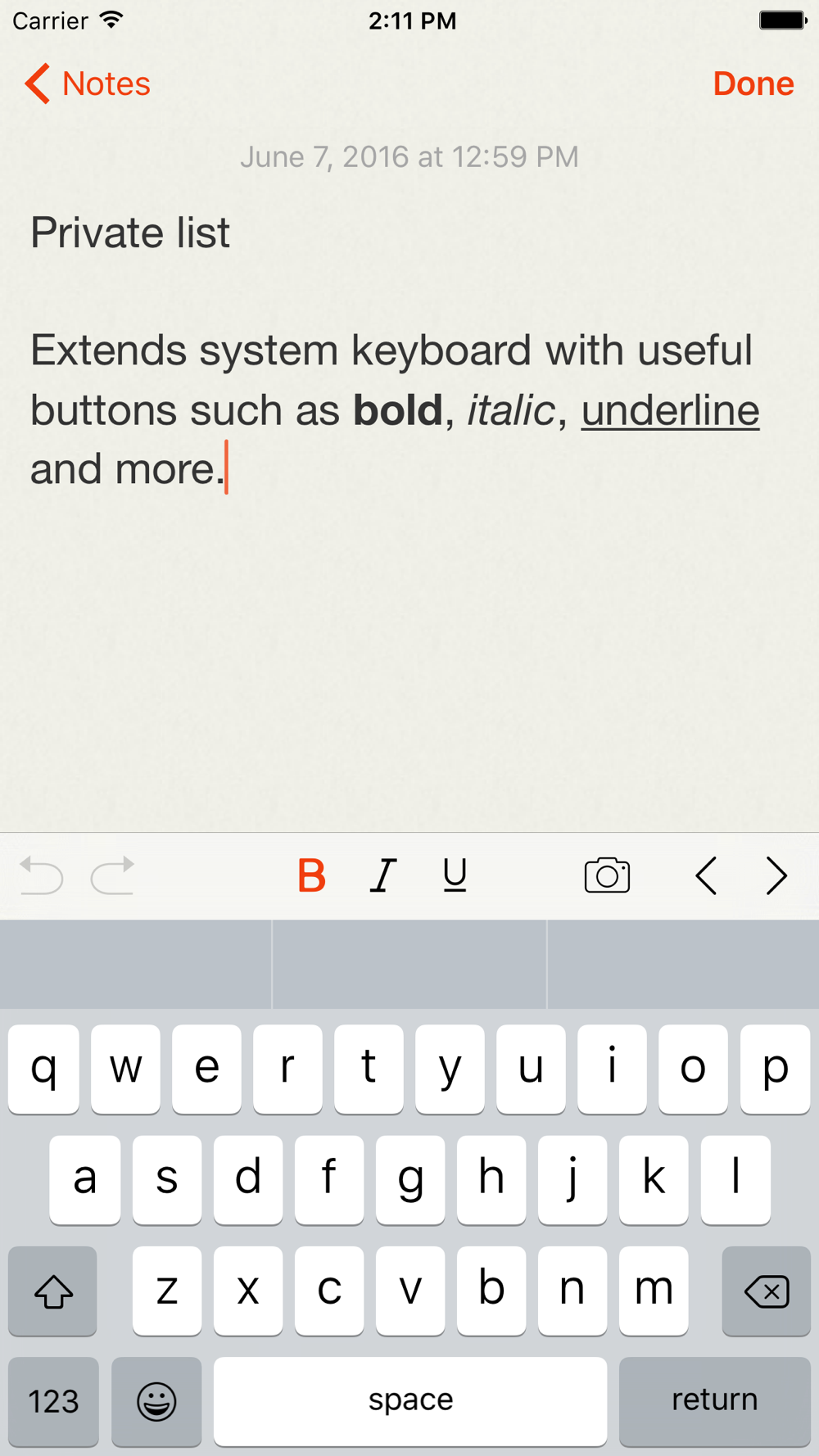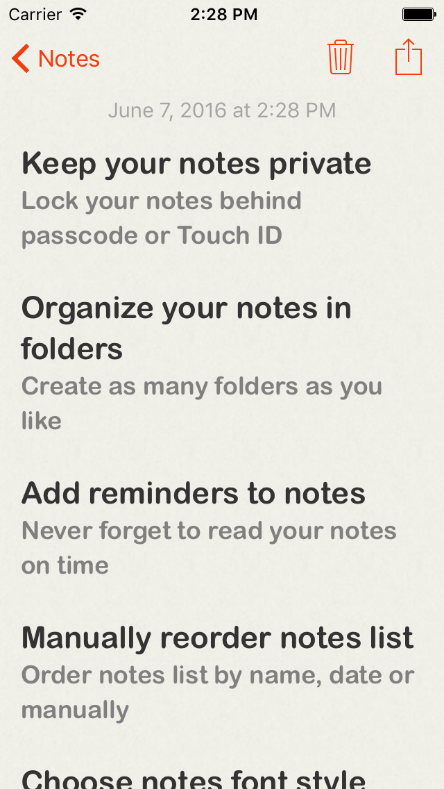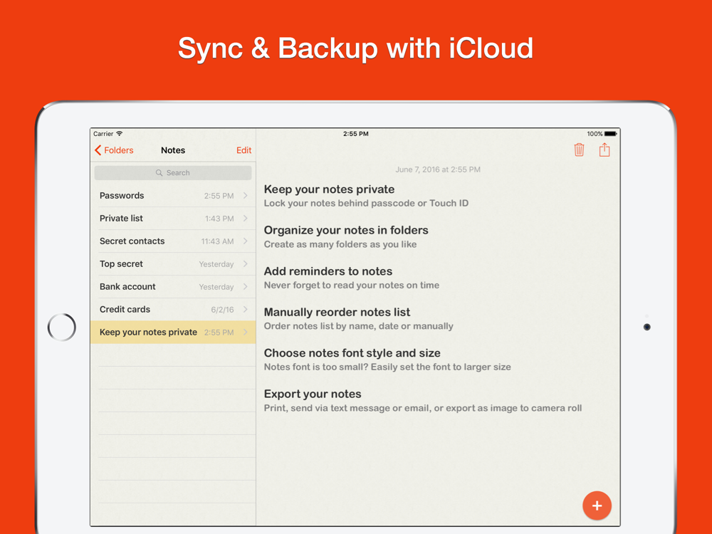 • Quickly Sync notes between iPhone & iPad with iCloud.