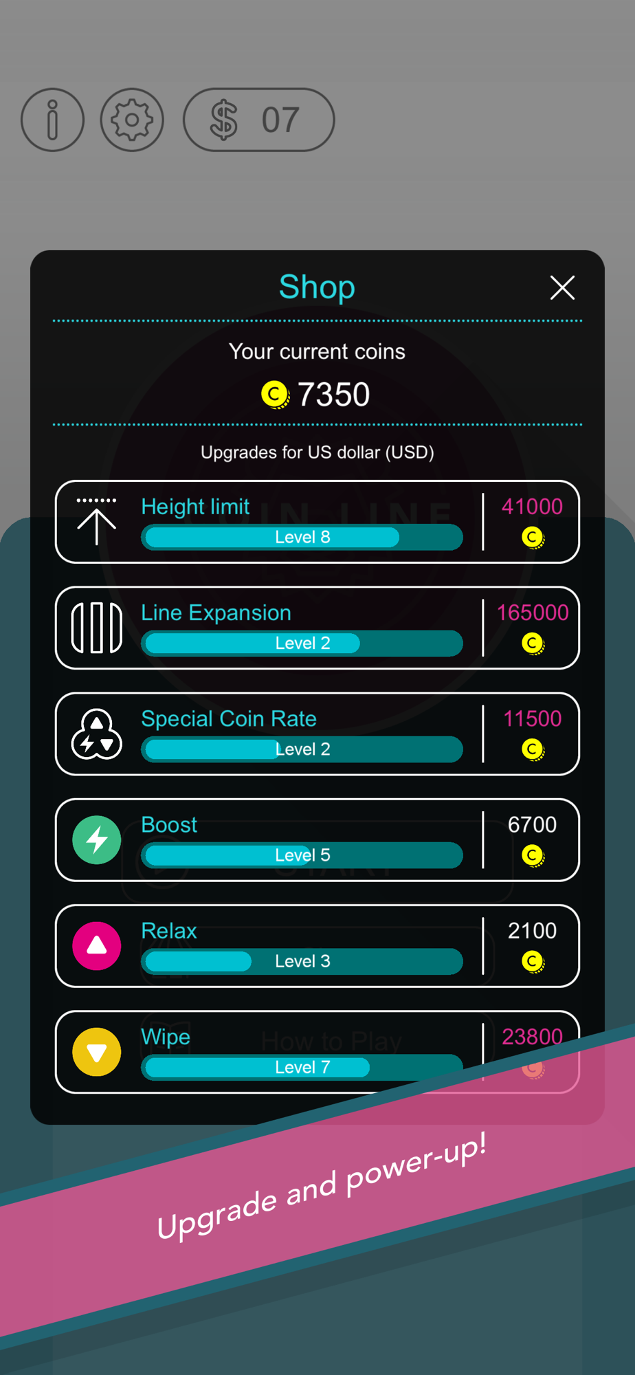 For example, you can get upgrades to heighten the line limit or strengthen the effect of the special coins.