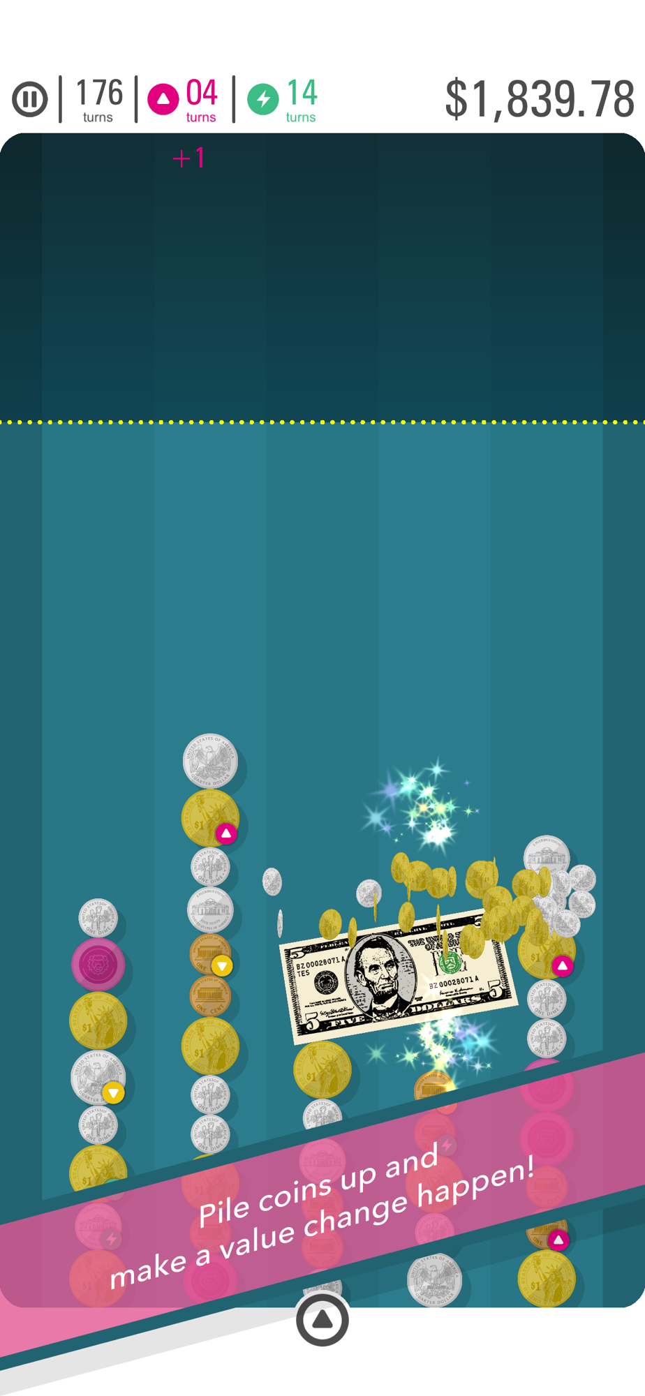Coins are added from the bottom. Make a value change happen as fast as you can and erase the coins effectively.