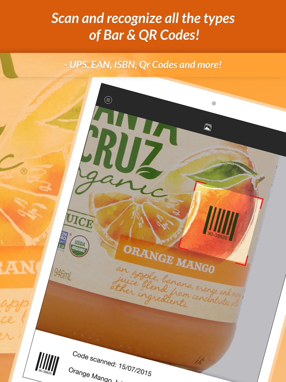 - Scan all types of commercial barcodes: UPC, EAN, ISBN etc.