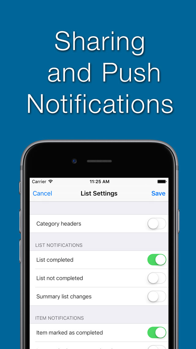 • Pre-defined and custom categories to easily organize your list by aisle and store department