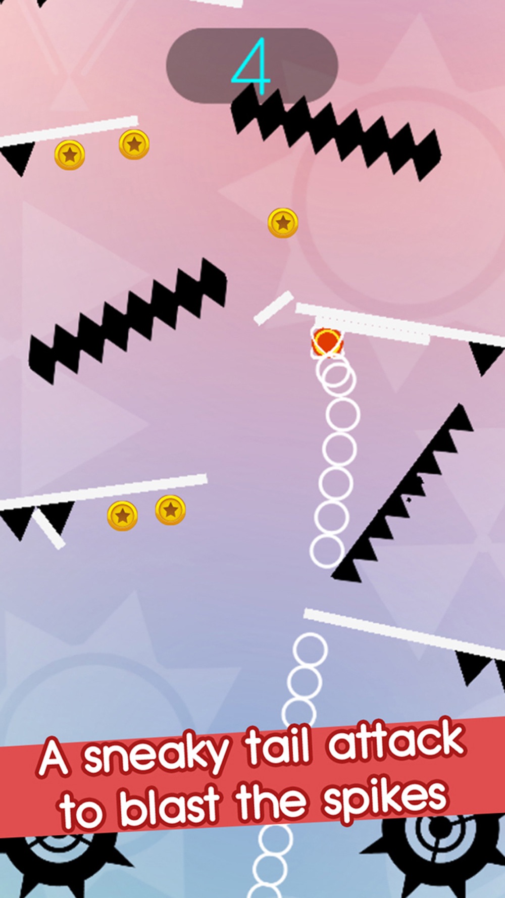 Get ready for a breathtaking journey down the pitfall filled with tons of spike traps. Keep your Eyes sharp and fingers fast if you wanna survive this journey alive. The rule is very simple stay away from anything black. Pick up some power ups on the go they can make you invincible. Don’t get fooled by the deceiving colors which are cool.