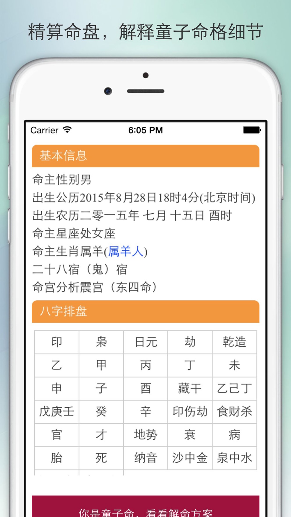 台湾大师提供全球第一套应用于手机上的童子命格测算器,精准测算,并提供独家专业化解方案。