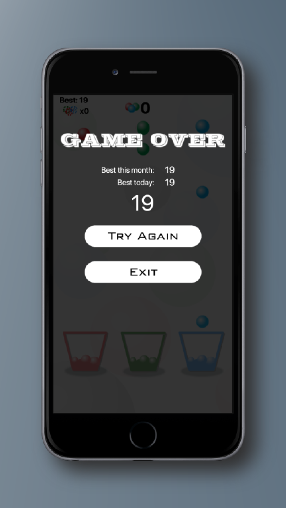 Recolha as bolas dentro dos recipientes da mesma cor.