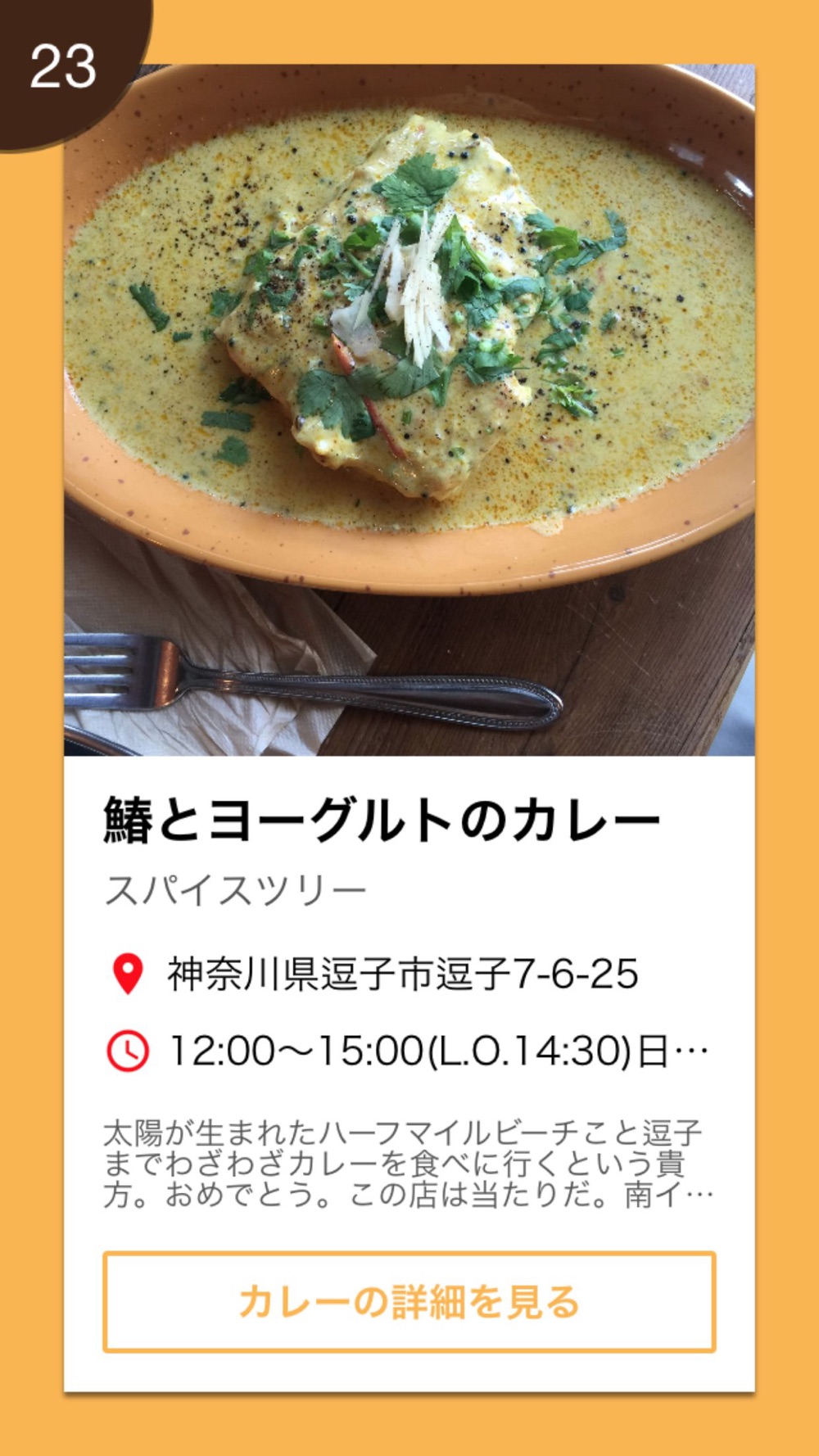 アプリを立ち上げるたびに美味しいカレーに出会うことが出来ます。