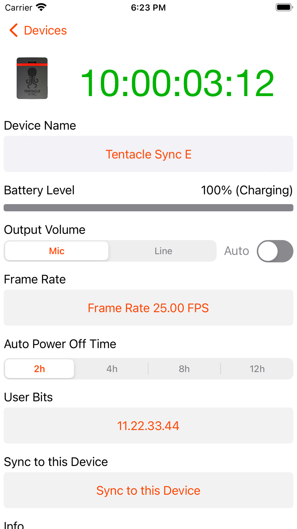 Control your Tentacle SYNC E timecode generator and TRACK E timecode audio recorder.