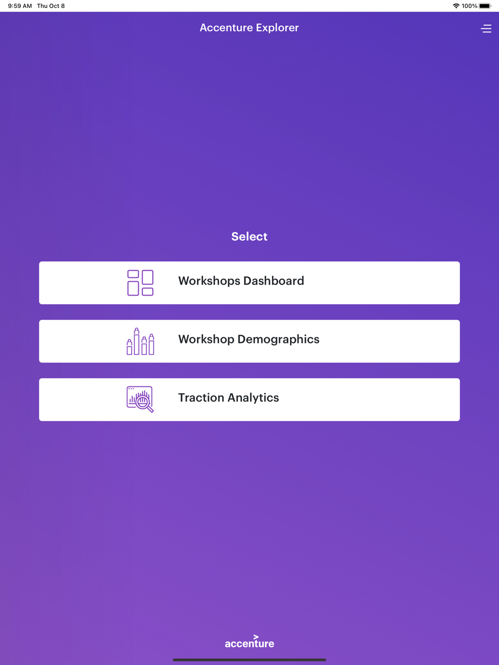 Accenture Explorer provides meeting and logistics information to clients who are scheduled to visit an Accenture location. Visit details, meeting agendas and pre-read materials, facility access, and Accenture insights on infrastructure services, business process outsourcing, and application services all in one place to ensure an insightful client visit. It serves as a platform of communication between all stakeholders during business meetings.
