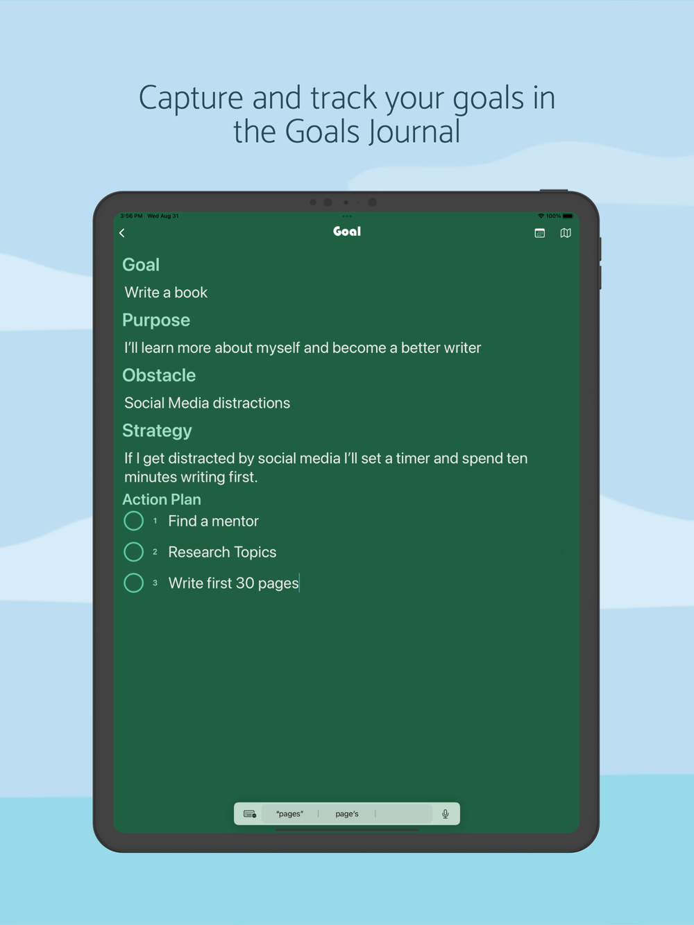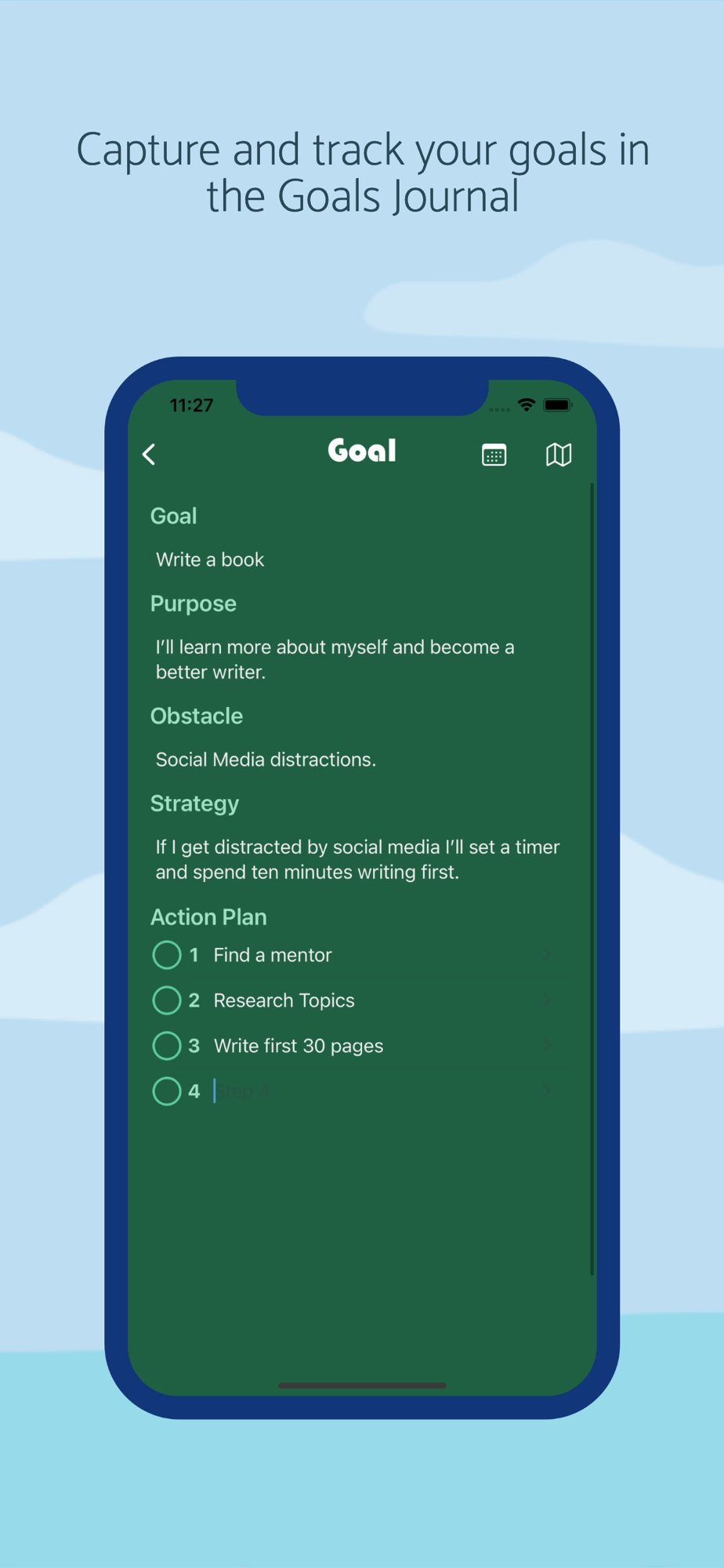 The Goal Setting Journal, which employs findings from the science of motivation which shows that the barriers that we think most impede us from fulfilling our goals can actually help us to realize them. You'll practice a goal setting strategy that will help you anticipate challenges and plan how to deal with them.