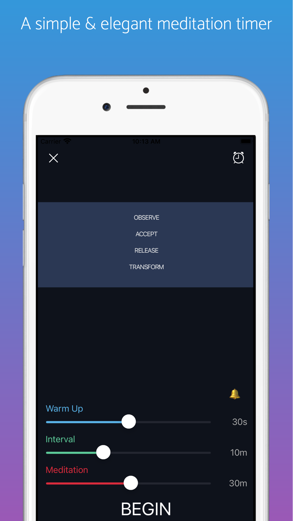 A simple yet elegant meditation timer that integrates with the Health app to track your Mindful Minutes.