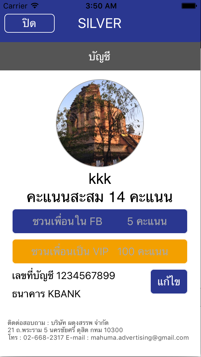 (SCB หรือ KBANK เท่านั้น) ที่สมาชิกระบุไว้ในข้อมูลส่วนตัว