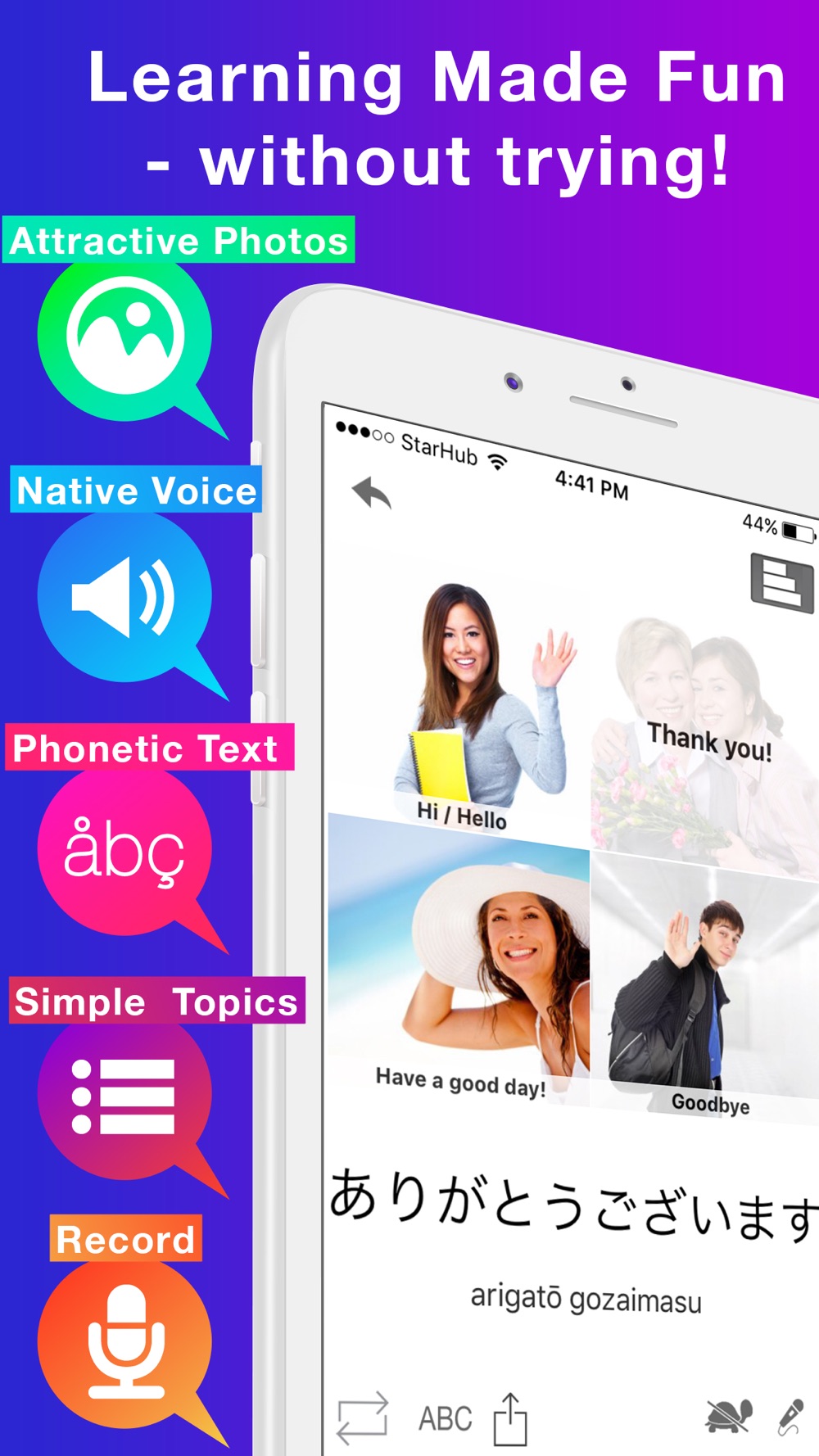 Of course it's most EFFECTIVE when it's FUN, so we dug into all the research on what speeds-up language learning, and then combined those aspects into this delightful little app. We even added pictures of HANDSOME men and PRETTY ladies, not for objectification but because it's objectively proven to increase the attention span of both men and women!