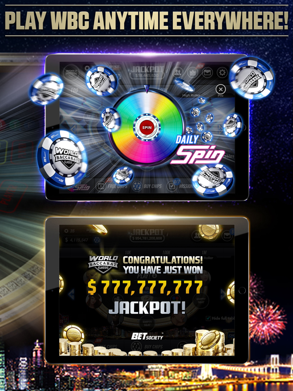 -Not just any round of Baccarat- Complete daily missions to earn chips and increase your status