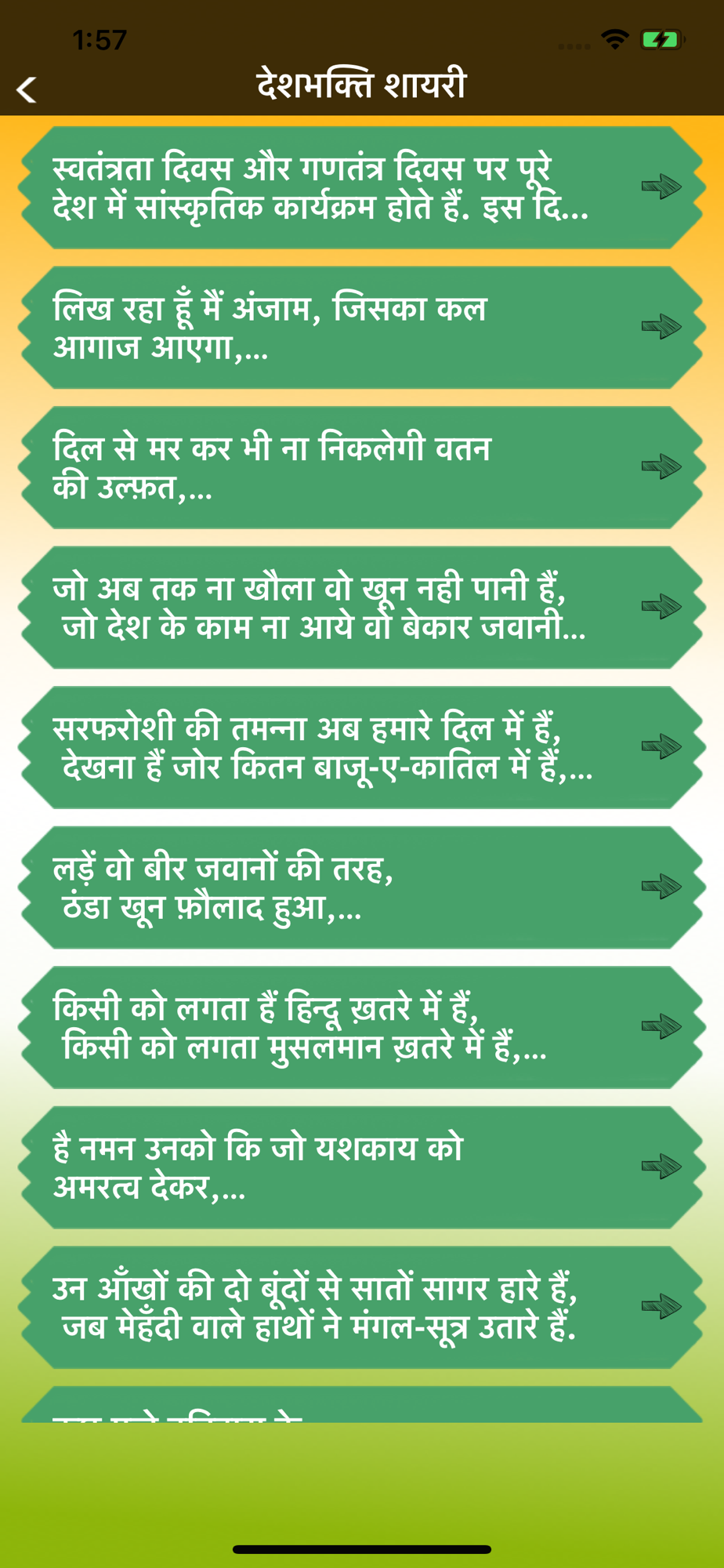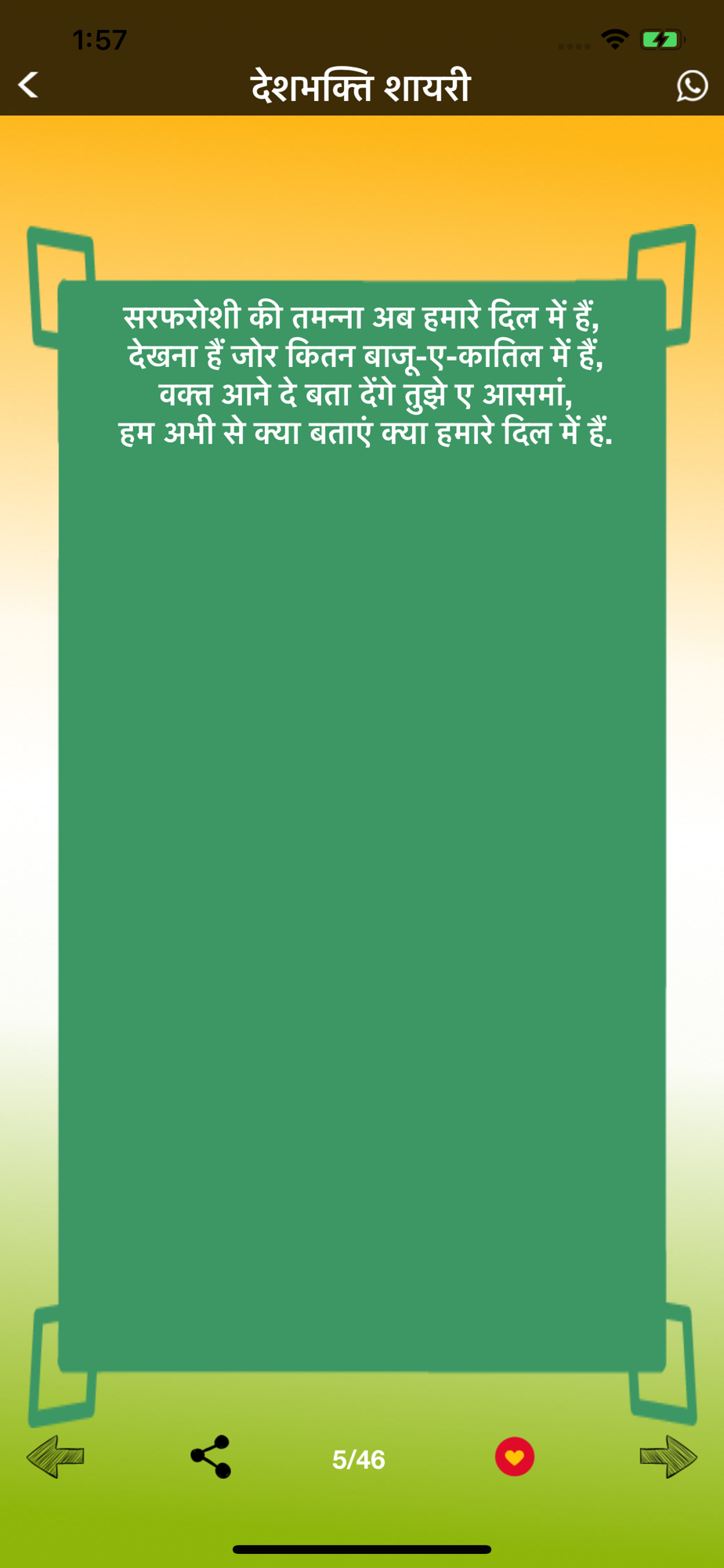 This app contains largest collection of hindi deshbhakti, Vande Mataram, Jai Hind shayari, Desh bhakti shayari, Army status 2020 & Patriotic shayari Status.