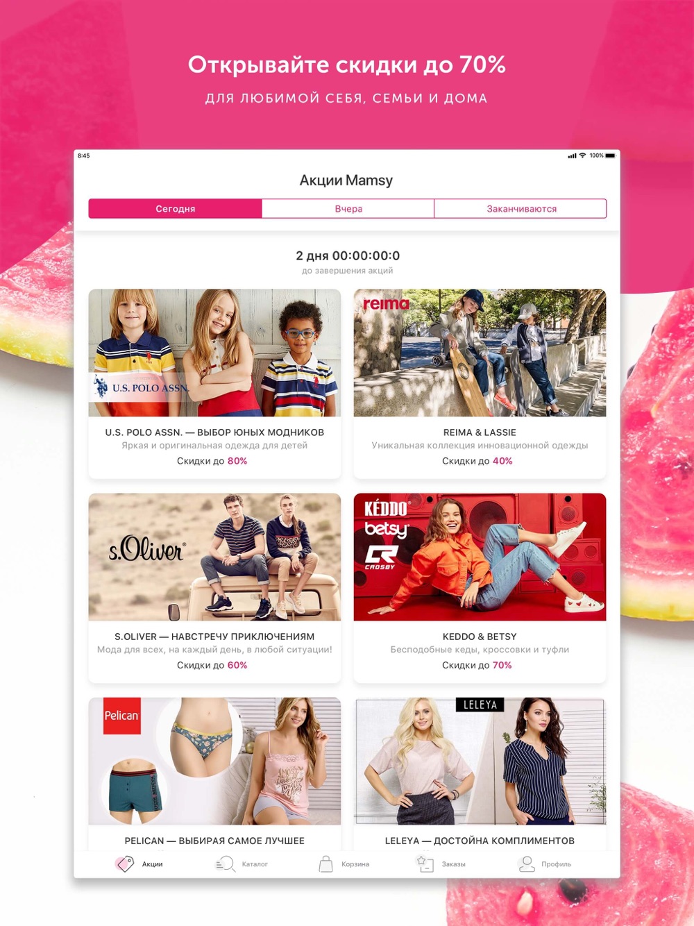 1. Каждый день только лучшие предложения! Узнавайте о новых акциях первыми и совершайте покупки со скидками до 70%!