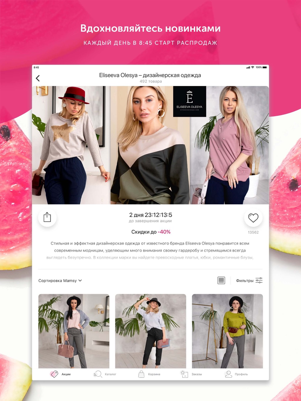 Удивляйся каждый день! Каждые три дня — полное обновление ассортимента. И для вашего удобства все товары собраны в отдельные акции по брендам или ассортименту.