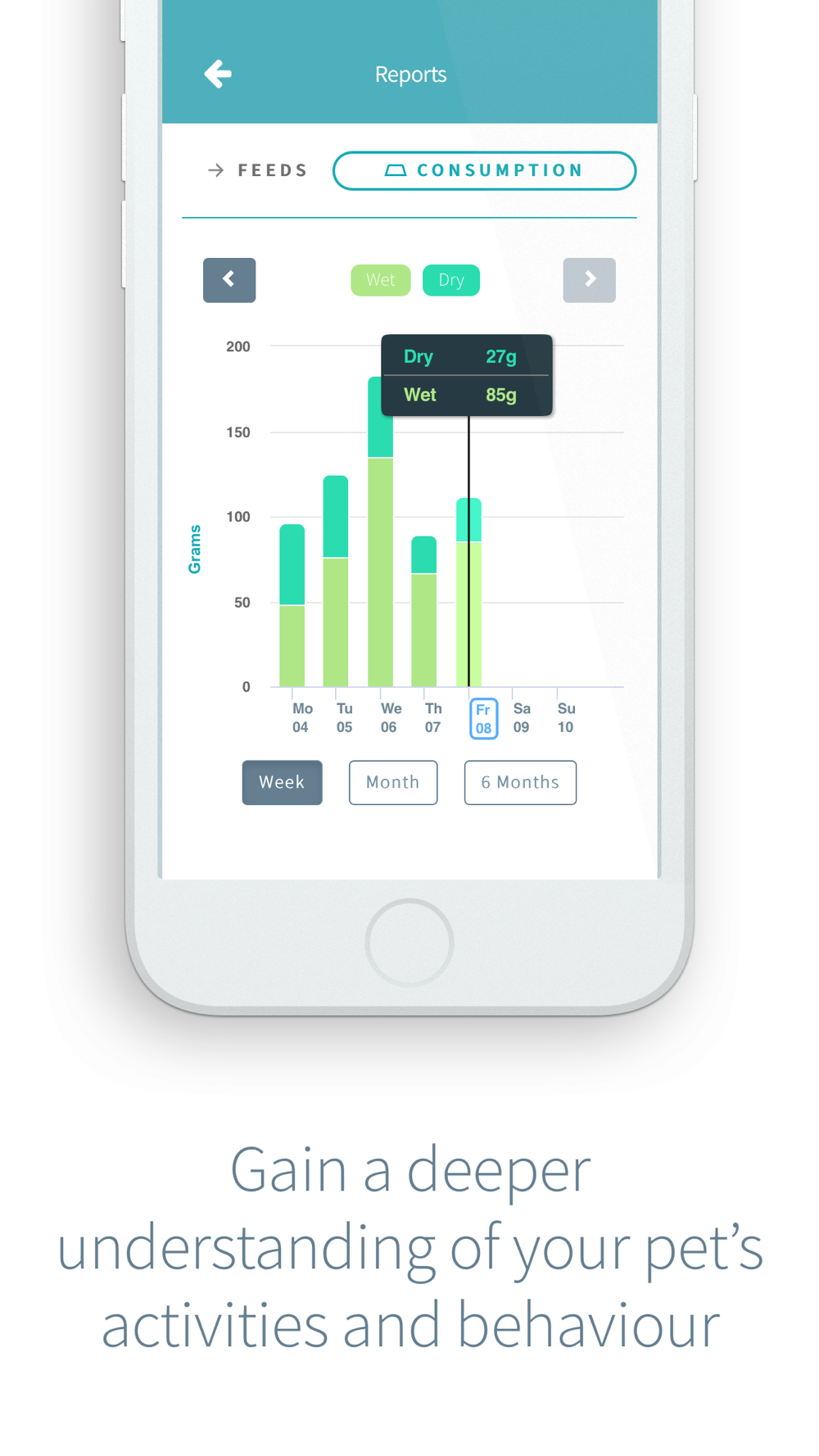 • Monitor your pet’s feeding behaviour over time – see how much, how often and when they eat. A change in feeding behaviour can be a key indicator of a change in health or wellbeing.