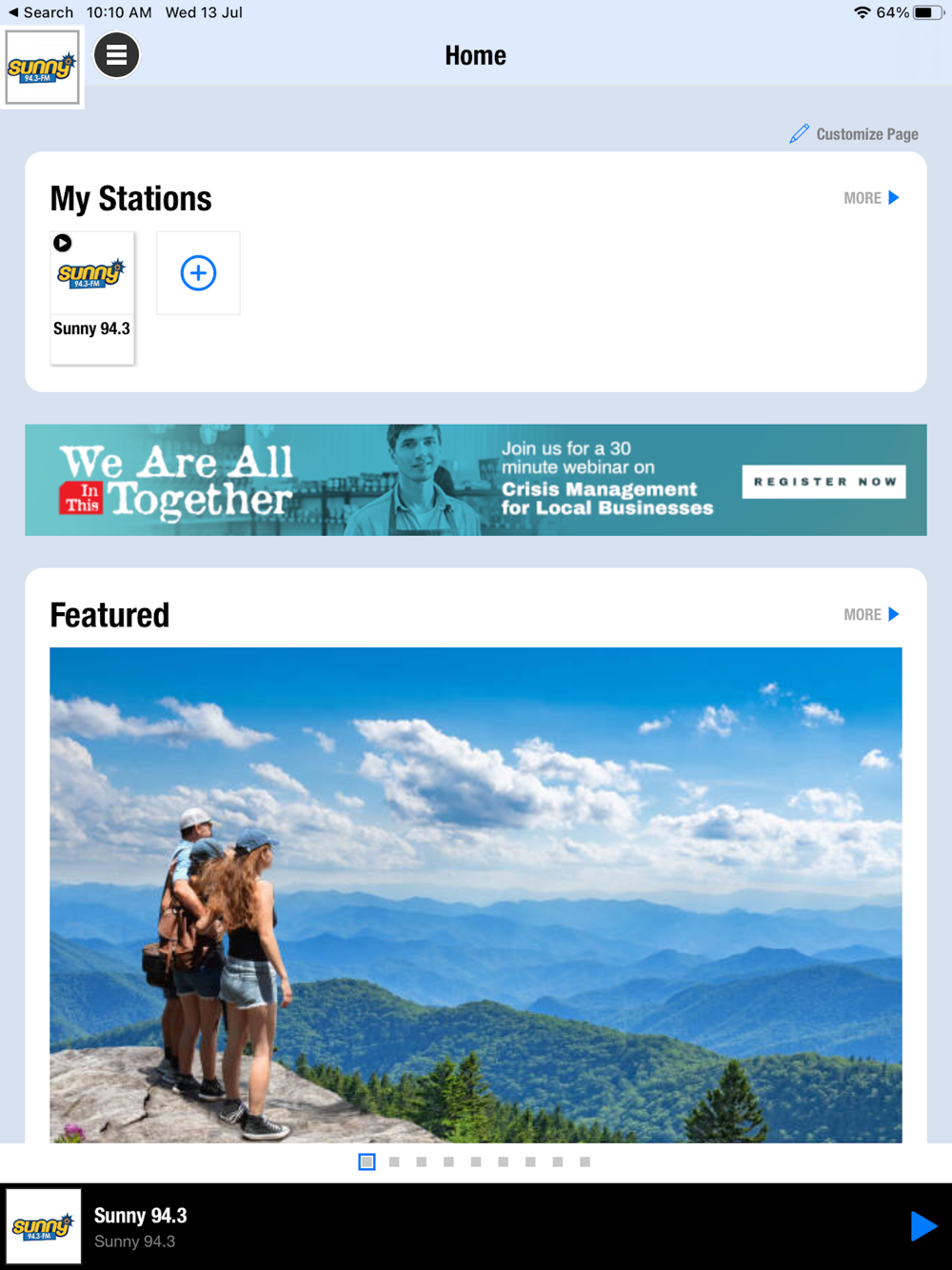 You decide when you want to listen, and when you want to browse by turning the live stream on or off within the app. Get what you want off the radio with Sunny 94.3 FM app.