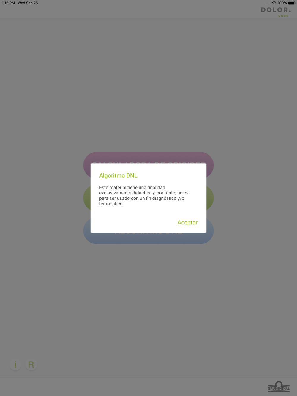 El uso de la aplicación y de la información contenida en la misma debe realizarse de acuerdo a la práctica y el conocimiento del profesional que la utiliza.