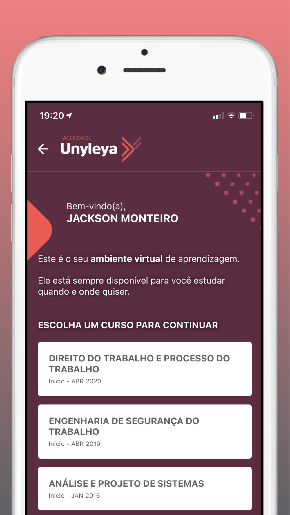 O aplicativo da Unyleya Educacional oferece todos os recursos disponíveis na plataforma Web. Com o app, você poderá otimizar o seu tempo e estudar quando e onde quiser. Você poderá assistir suas aulas, responder suas atividades, participar dos fóruns, solicitar histórico, realizar provas e acompanhar suas solicitações com a mobilidade que só o aplicativo oferece.