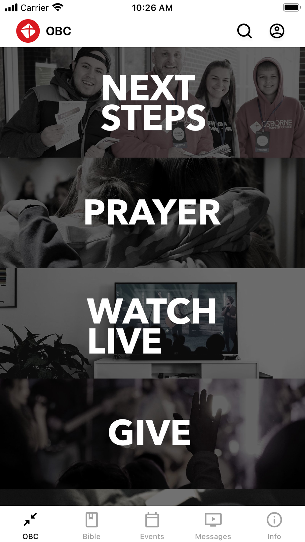 The Osborne Baptist Church App was created with the Subsplash App Platform.