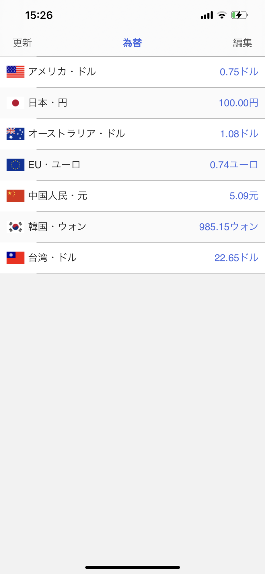 為替情報を更新したい場合はホーム画面左上の「更新」を押すことで更新できます。