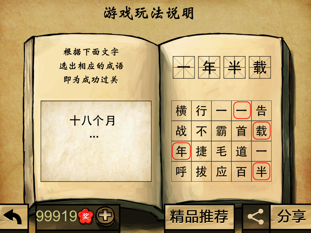 ◆ Help or ask help from friends through WeChat or Weibo sharing, and of course you can show your own idiom skills.