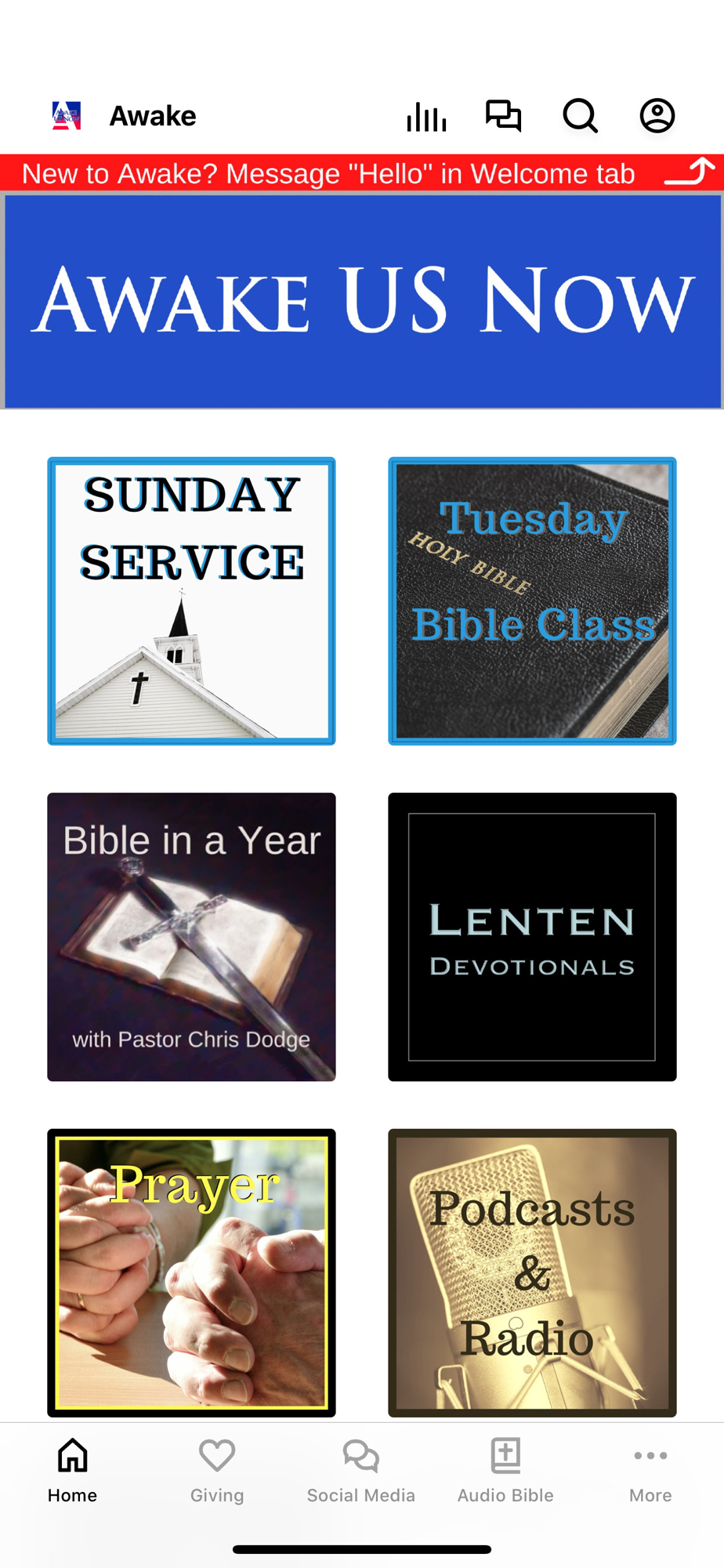 Watch our Sunday morning worship and teaching service and our Tuesday morning Bible class via live broadcast or view on demand. From our app you can also listen to Pastor Dodge's teachings via podcasts or several radio options. Read our blog, our latest newsletter, and the Bible, all from our app. Feel free to message us through the app and you can support Awake Us Now though the giving portal of the app.