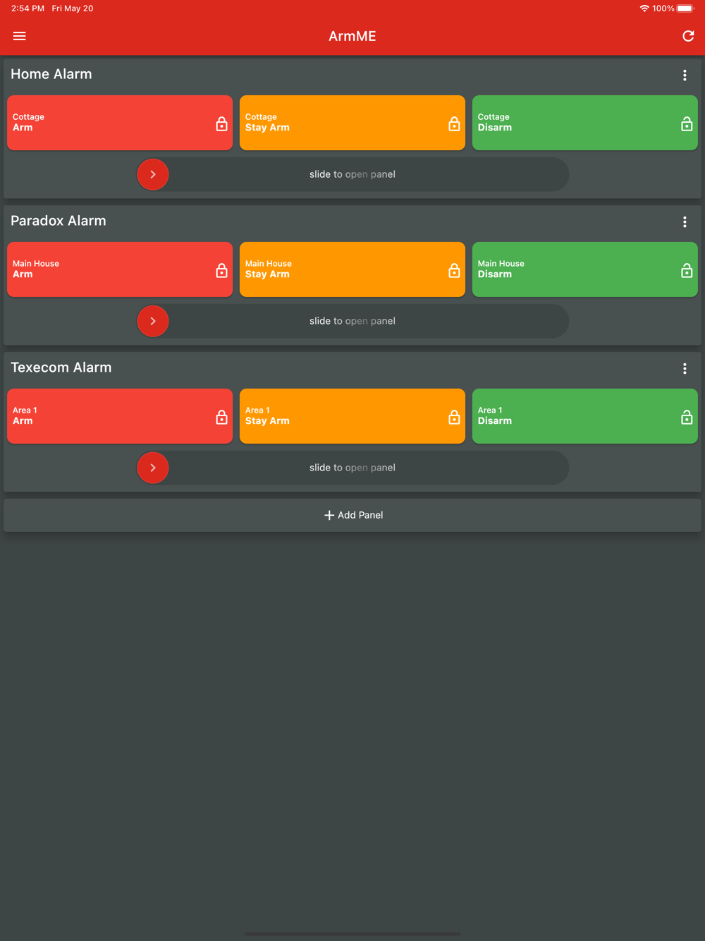 - Arm, disarm or stay arm different areas of your home as set up by the technician