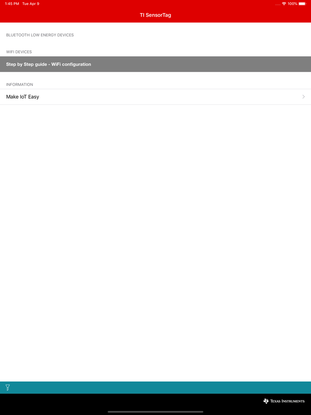This app connects all your Simplelink(TM) Sensortags and Launchpads to your smartphone and the cloud with Bluetooth Low Energy and WiFi support. Includes support for Over-the-Air upgrades for all development platforms. Cloud connectivity is supported through MQTT to any cloudservice or with dweet.io. To learn more, see the web links to each development kit.