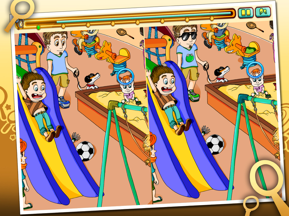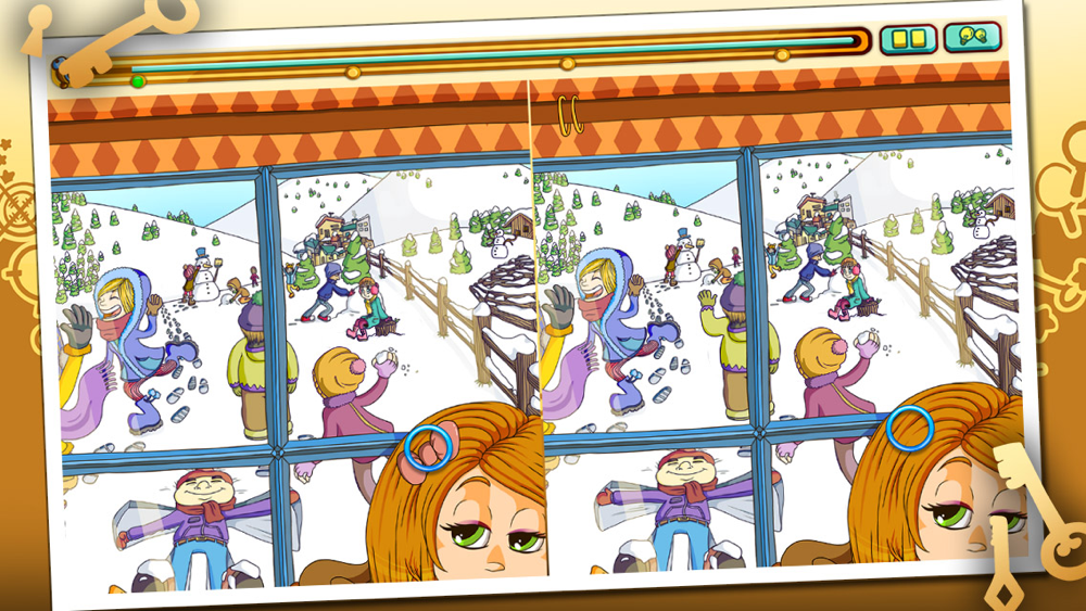 With its unique musical atmosphere and its multiple themes including a birthday party, a zoo, a snowball fight, or a theater play, Spot The Differences 2 will let you find 400 differences accross 10 different board sets. 5 game modes are available to challenge casual but also more intense gamers, including a 2 players mode that will allow you to play with your friends.