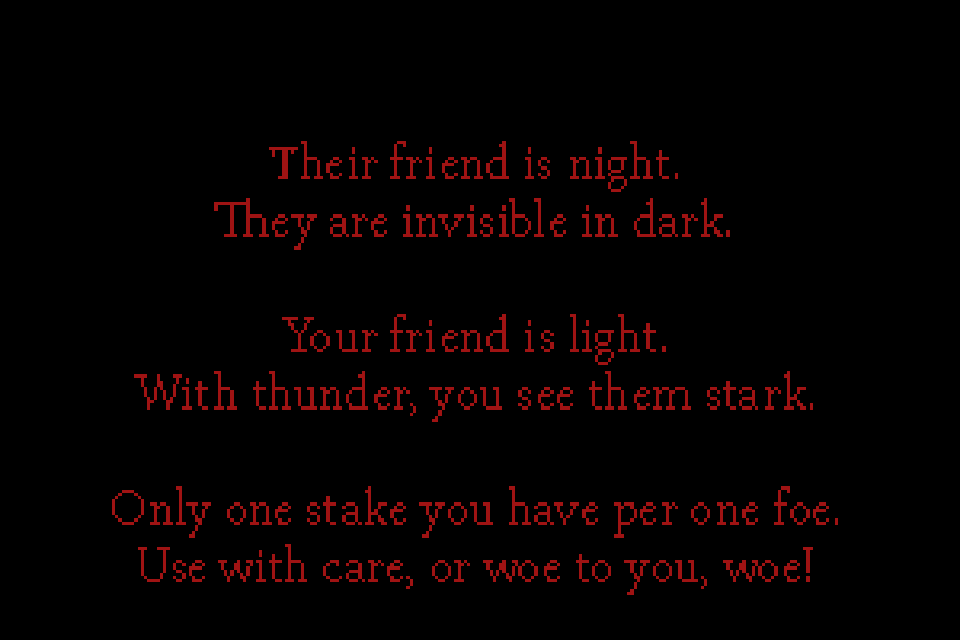 You need to stab the vampire at the right moment, because you have only one stake for one enemy. If you miss, you are the one that's hunted! The hard part is, your foes are invisible at the dark of night, you catch a glimpse only when the thunder strikes. So you need to time your attack according to what you saw at the thunder.