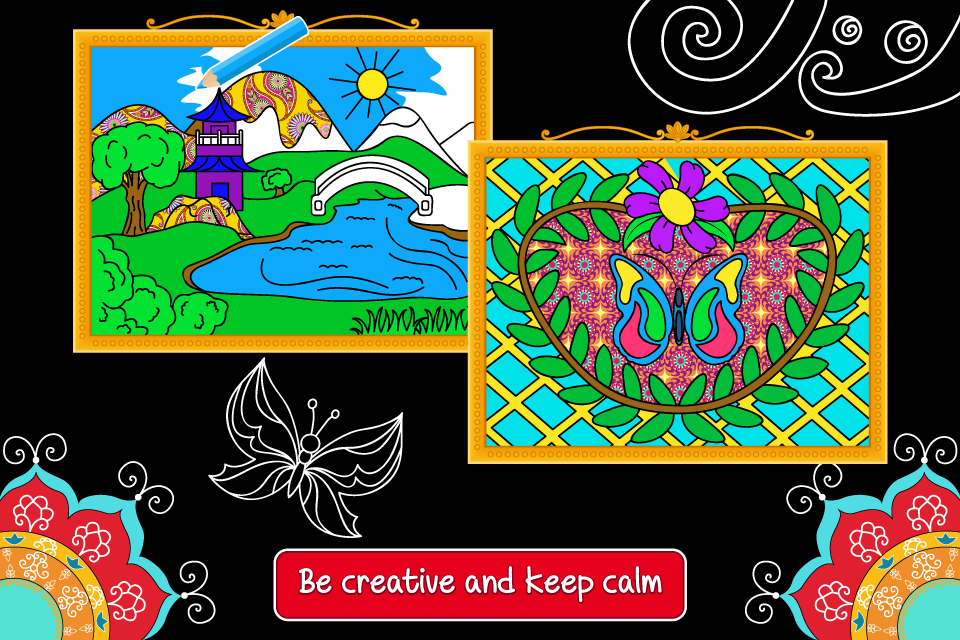This is an Exclusive and ultimate coloring book experience featuring relaxing music to enhance the experience.