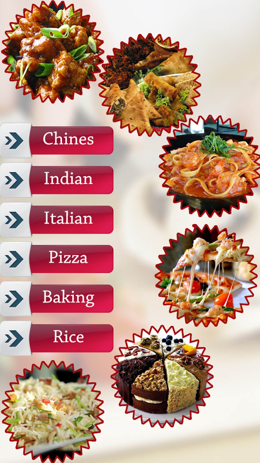 It include different verities of the recipes-Chinese Recipes, Indian Recipes, Italian Recipes, Italian Pizza, Baking & Desert Recipes, Rice Recipes, you can find, view the photo of the recipes, ingredients and method-Search the recipes by category.