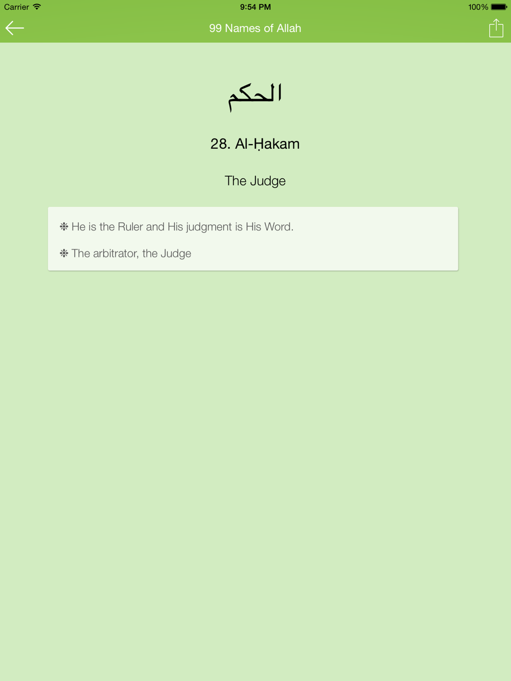 • Read the English Translation of the Meaning of Quran in Description for each name.