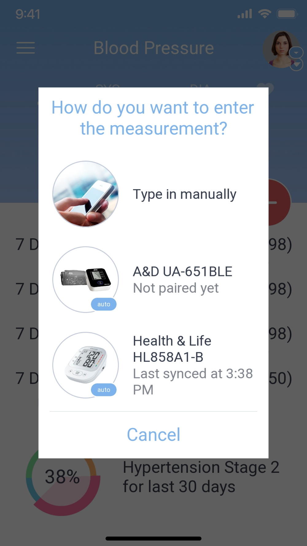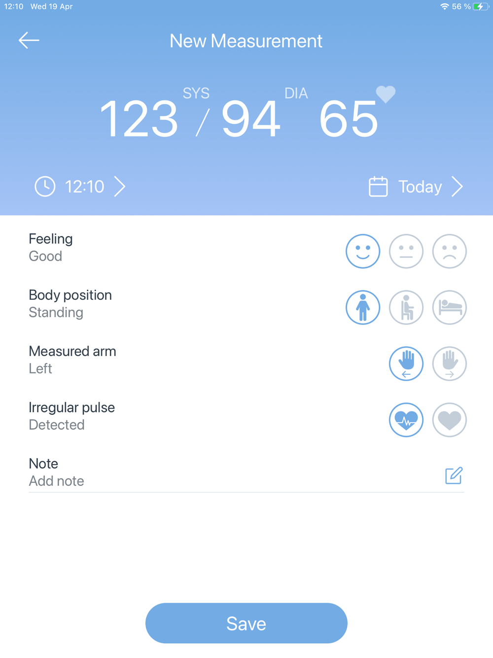 Optional integration with MedM Health Cloud is available to registered users and makes it possible to not only store, backup, and export blood pressure history securely and reliably, but also to share it with family, caregivers, and physicians.