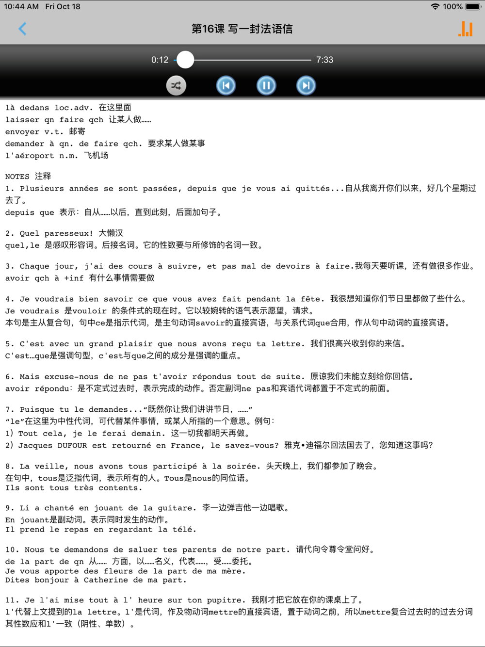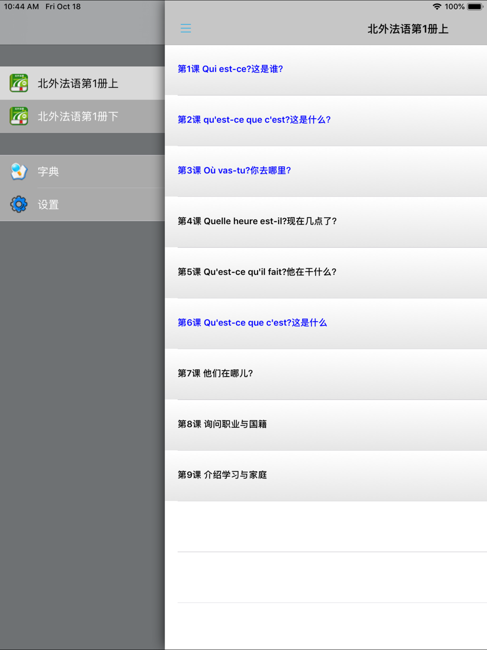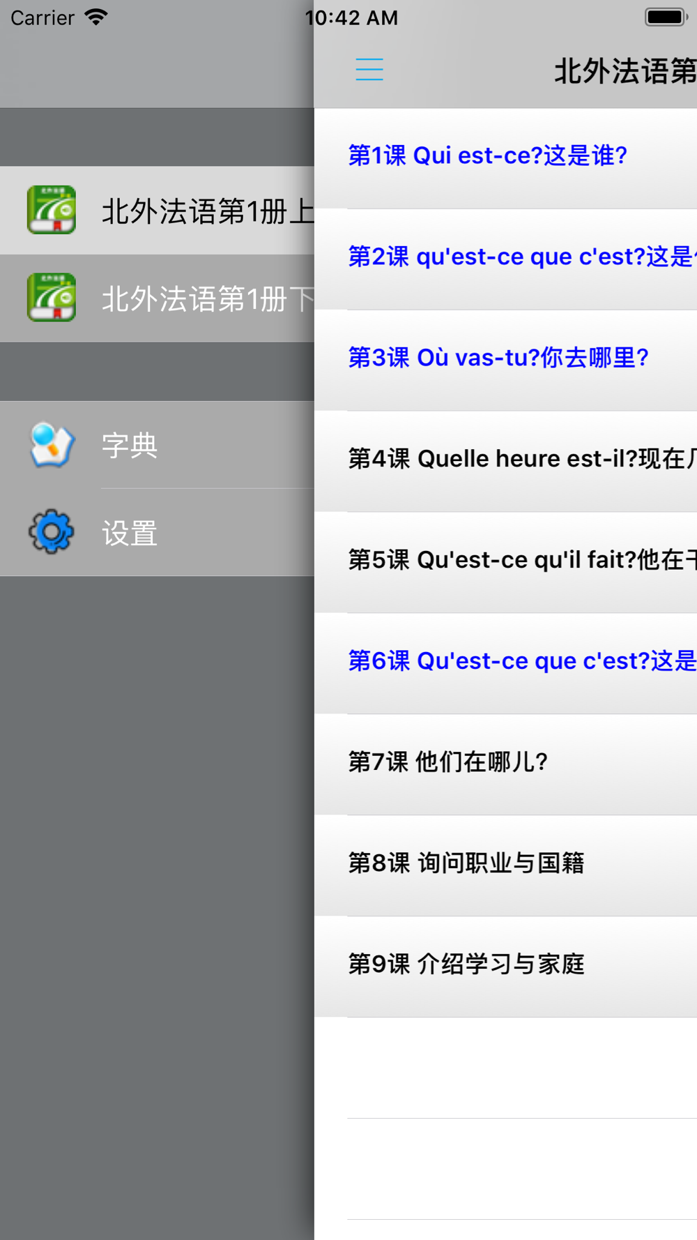 本应用根据《北外法》教材改编,十年前第一波留法的绝大部分用的都是这个教材。