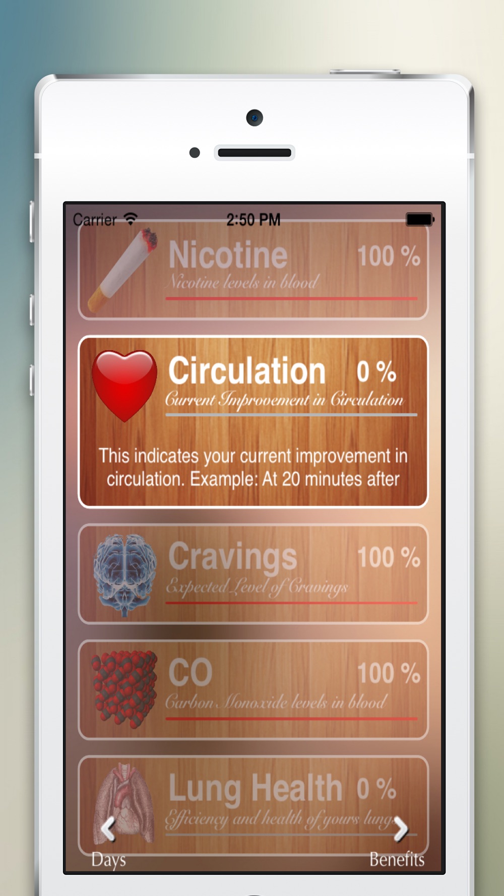 This app takes participants through a five-day step-by-step program to change daily habits and achieve their goal to quit smoking. Through psychological motivations (such as affirmation statements) and physical changes (such as dietary modifications), the Five-Day Plan works to break the participant’s smoking routine and eliminate cigarette cravings. You can breathe better, have fewer digestive problems, feel more energy, prevent heart problems, lung cancer and other cancers, eliminate bad breath, have fewer wrinkles, remove the yellow teeth and fingers, etc..