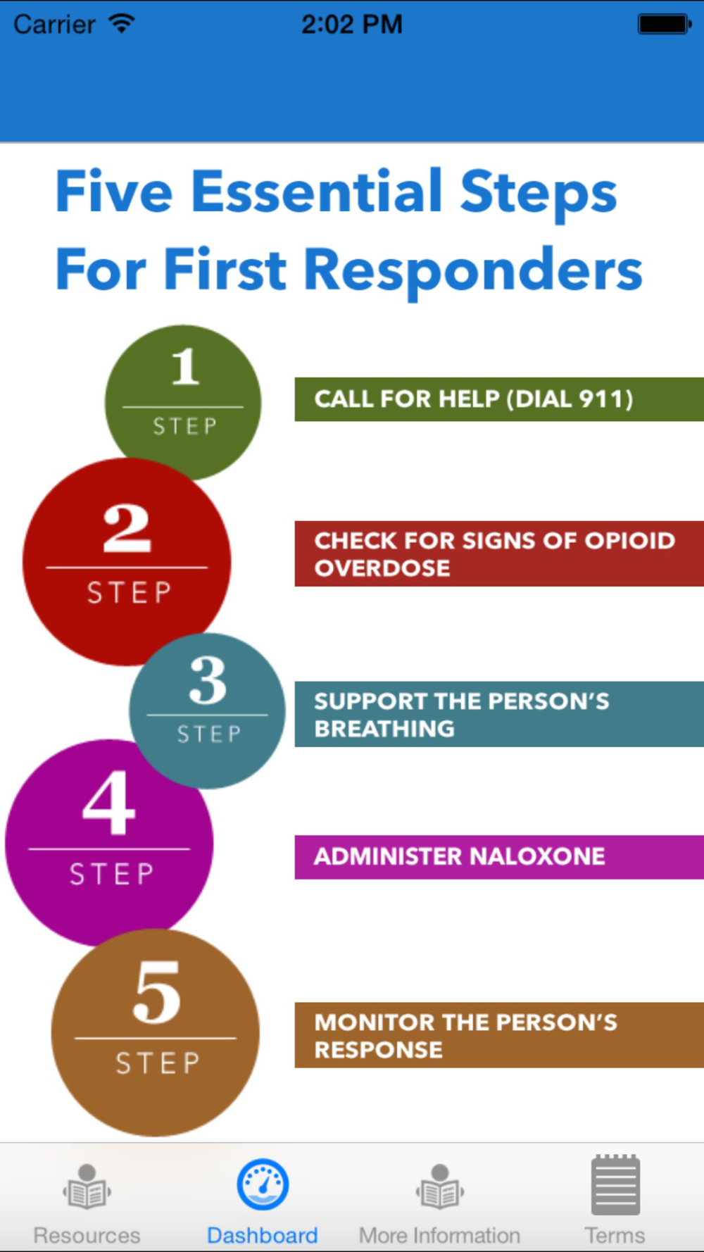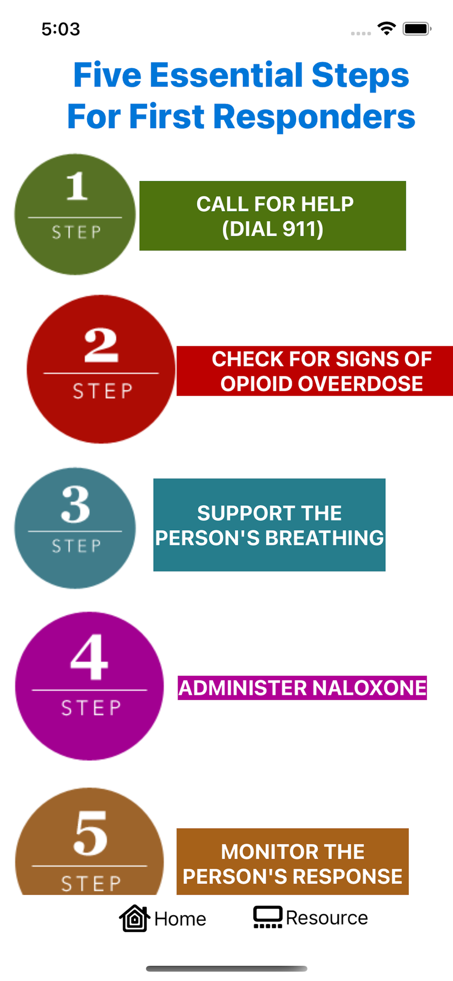 *Easy and Intuitive interface for the Five Essential Steps for First Responders.