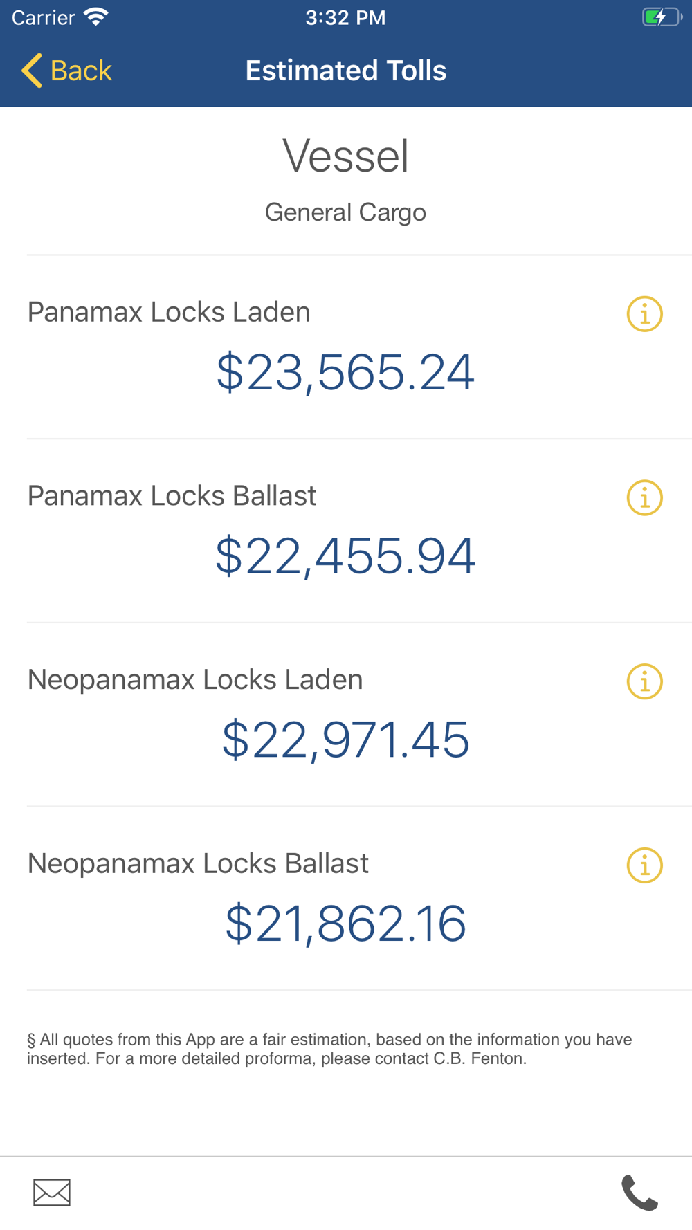 The Fenton2GO App makes the calculation of the Panama Canal transit expenses easy by providing you the following features: