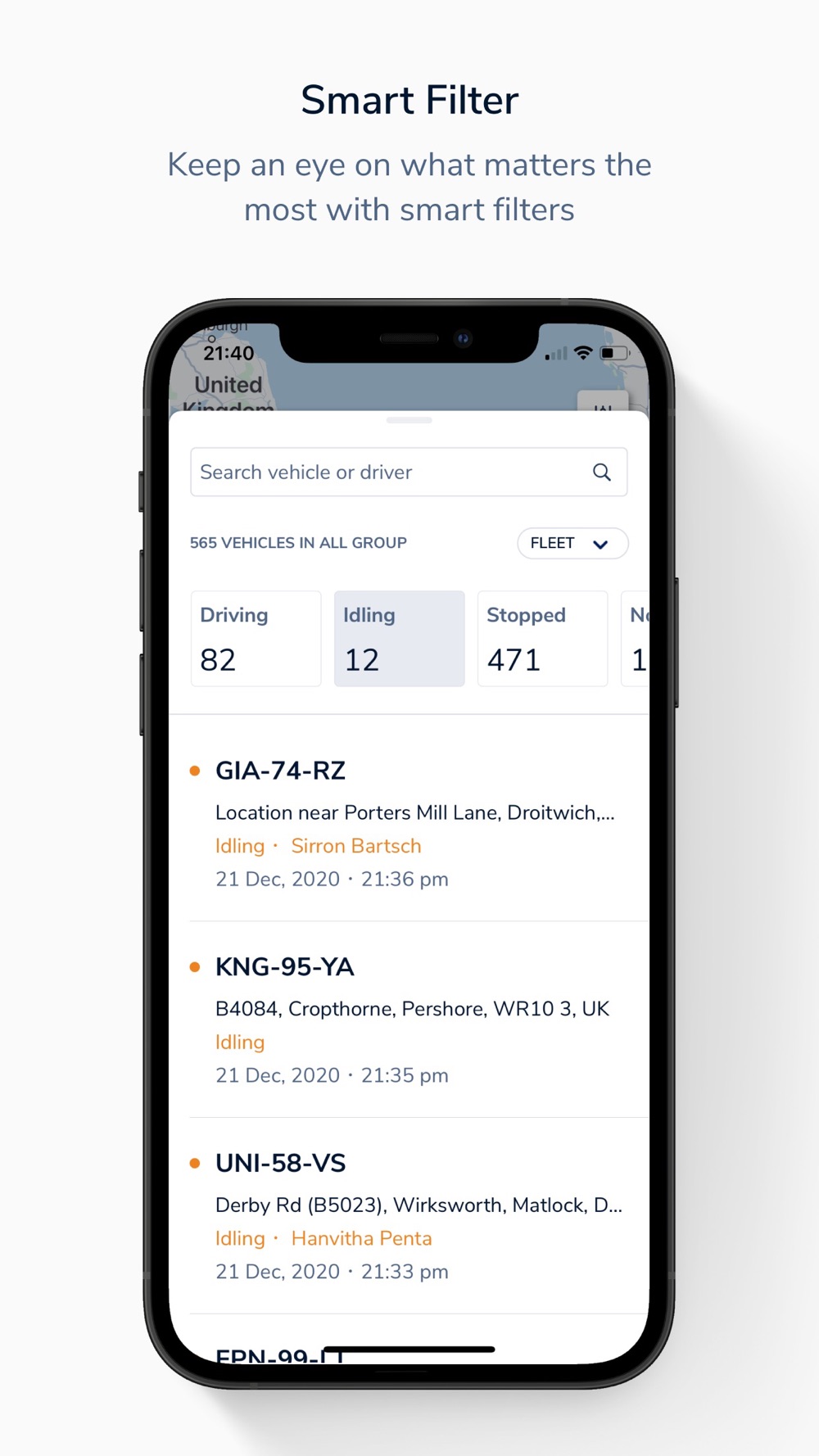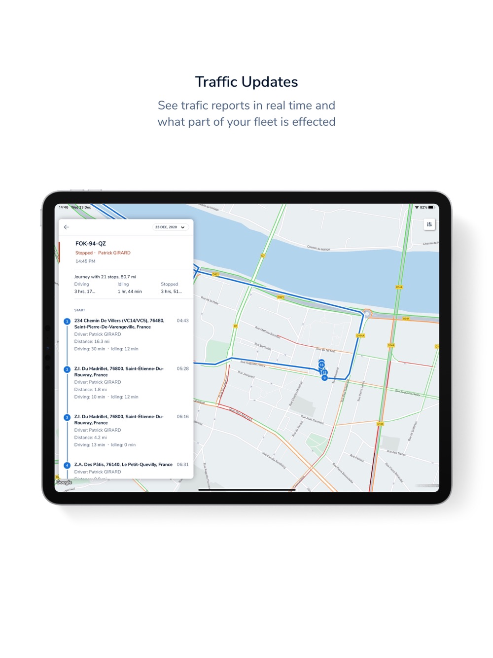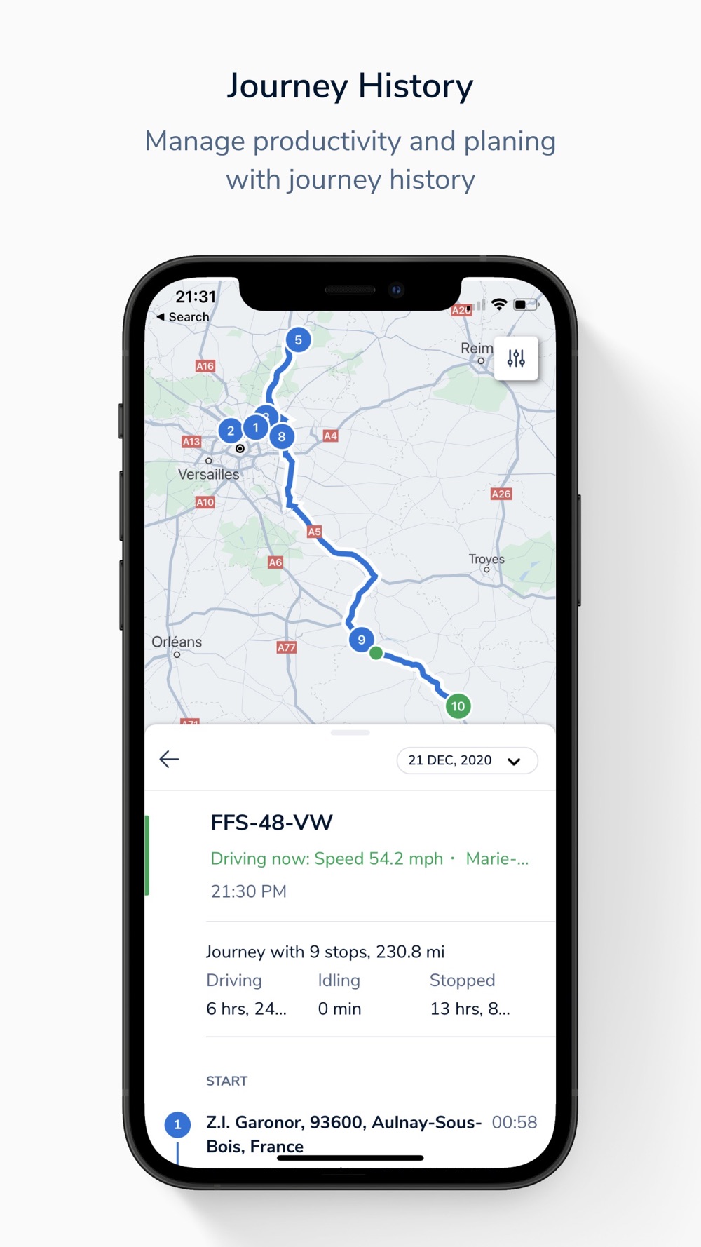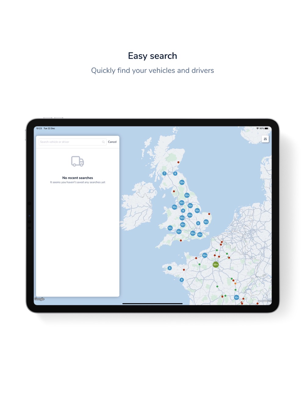 With the Connect app, you get the power of Masternaut Connect tracking and telematics while you are away from the office. See an overview of your fleet vehicles, including their locations, journeys, and status (driving, stopped, etc.). With this real-time, mobile access to your fleet, you can monitor and direct your fleet operations with ease.