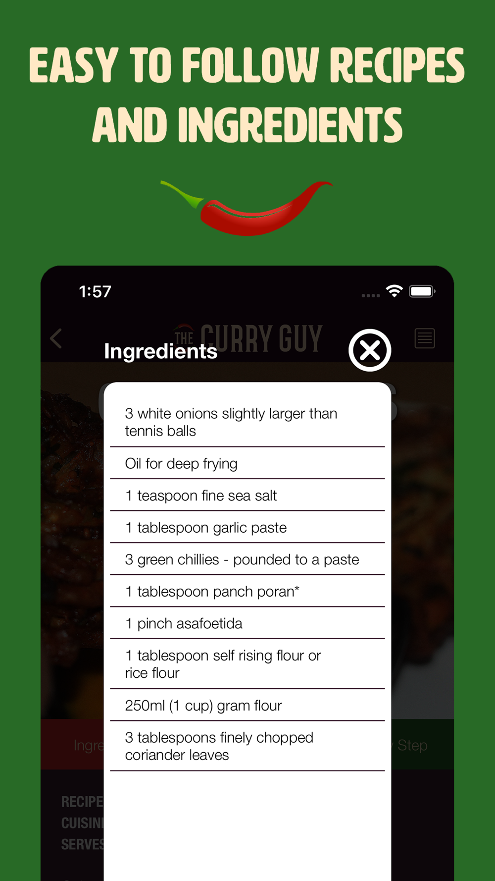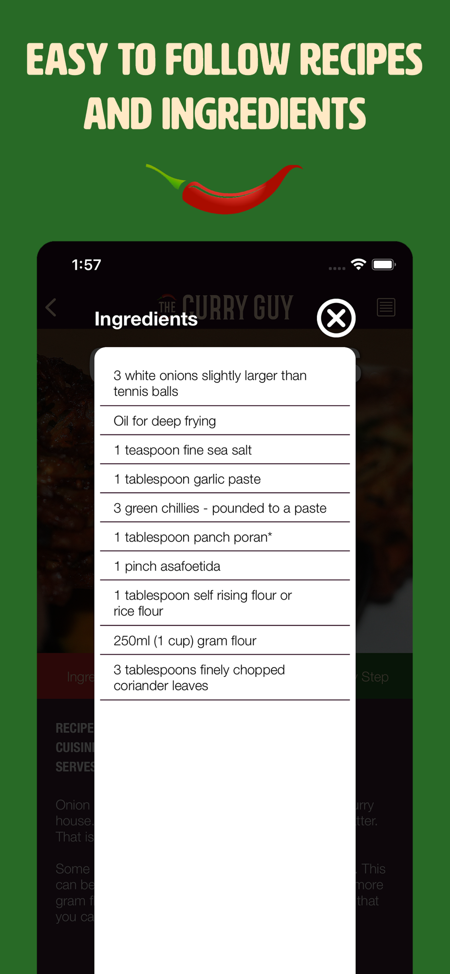 The Curry Guy app features over 250 recipes (over 25 of which are free of charge). Each of these recipes includes illustrated step-by-step instructions, designed to keep things simple in the kitchen.