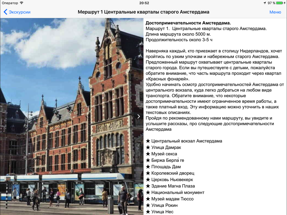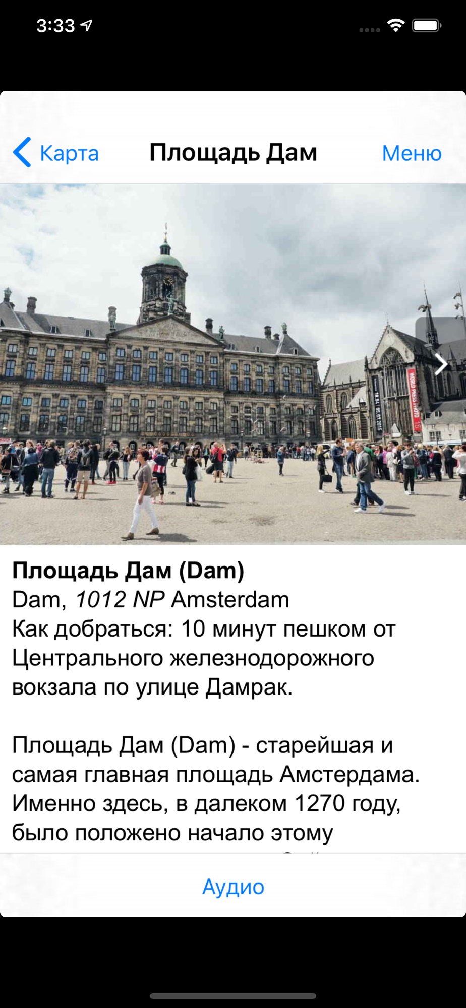 ● АУДИОГИД ПО АМСТЕРДАМУ. Рассказы аудиогида озвучены профессиональным диктором. Слушайте рассказы, не отвлекаясь от осмотра достопримечательностей и не теряя время. Не стоит лишний раз портить зрение, читая на ходу текст на небольшом экране.